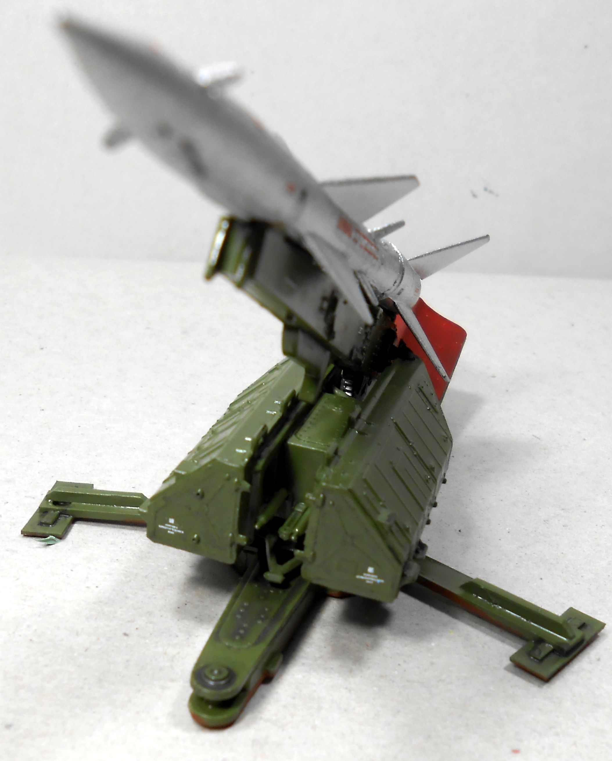 Денис, пожалуйста, всегда рад помочь! По покраске газоотбойник можно пойти двумя путями: боевым и повседневным. Вы верно подметили, что при пуске обгорает газоотбойник. И не только, ещё и стрела и аппаратные кожужи. В прд 58 (пороховом реактивном двигателе тягой 58 тонн) пороховые шашки горят. Можете представить, какой хвост и тяга. Это первая ступень-стартовый двигатель. В повседневной службе он такой же, как и сама пусковая. Видел вариант с красным торцом задника газоотбойника. Но это исключение. Ещё можно посмотреть камуфляж два варианта: сразу после покраски или линялый с дождевыми потоками запыленностью и следами смазки верха стрелы направляющей. Цветовая гамма - в зависимости от места дислокации дивизиона. И ещё на ракете маркировка красным не наносилась. Серебристая пакета и так - демаскирующим элемент. Были мелкие надписи чёрным для обслуживания, заправки топлива, воздухом и т. д. Как говорится, доклад окончен. Успехов!