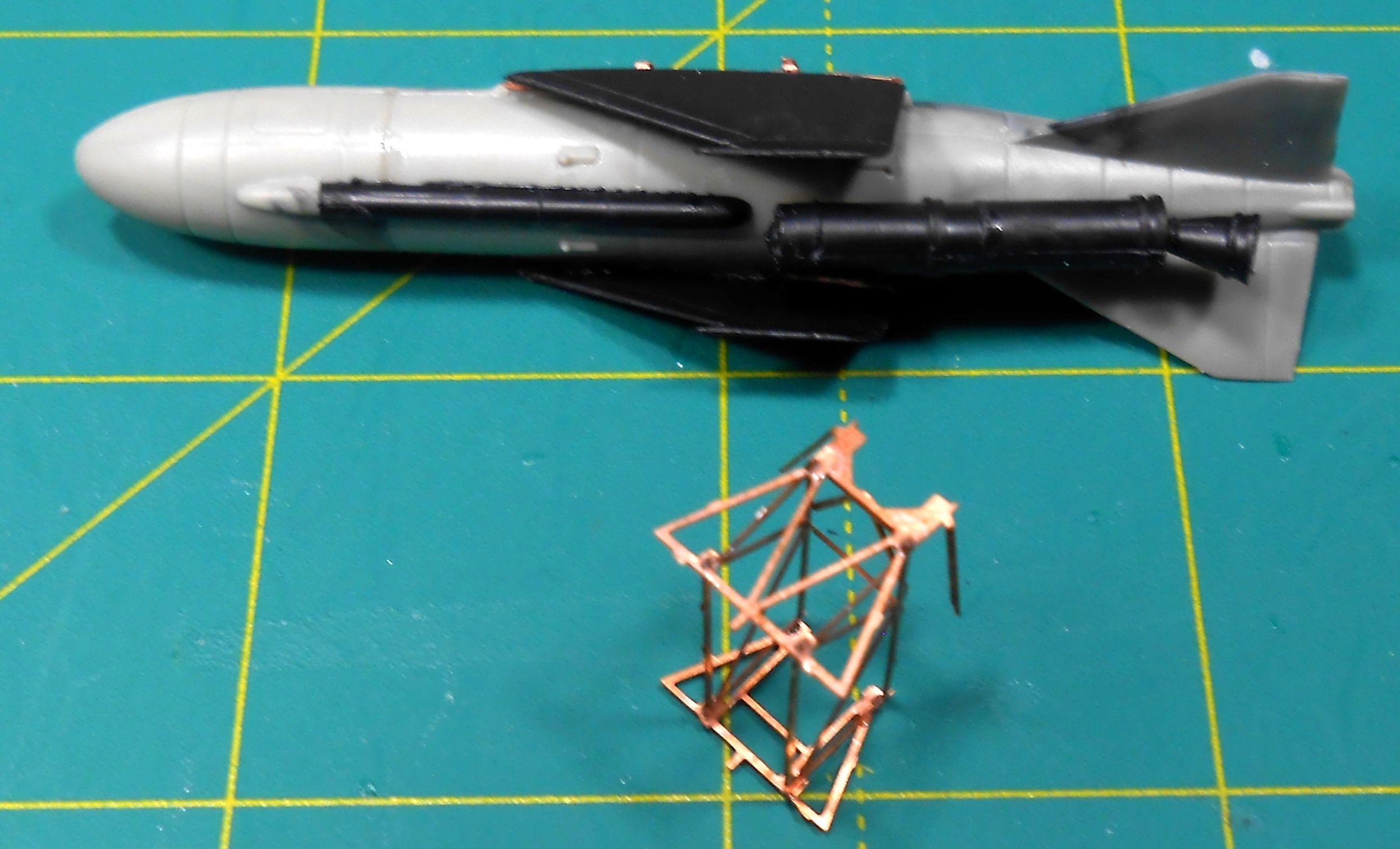 Сама сборка не принужденная.Из интересного :надо было отпилить у ракеты крылья