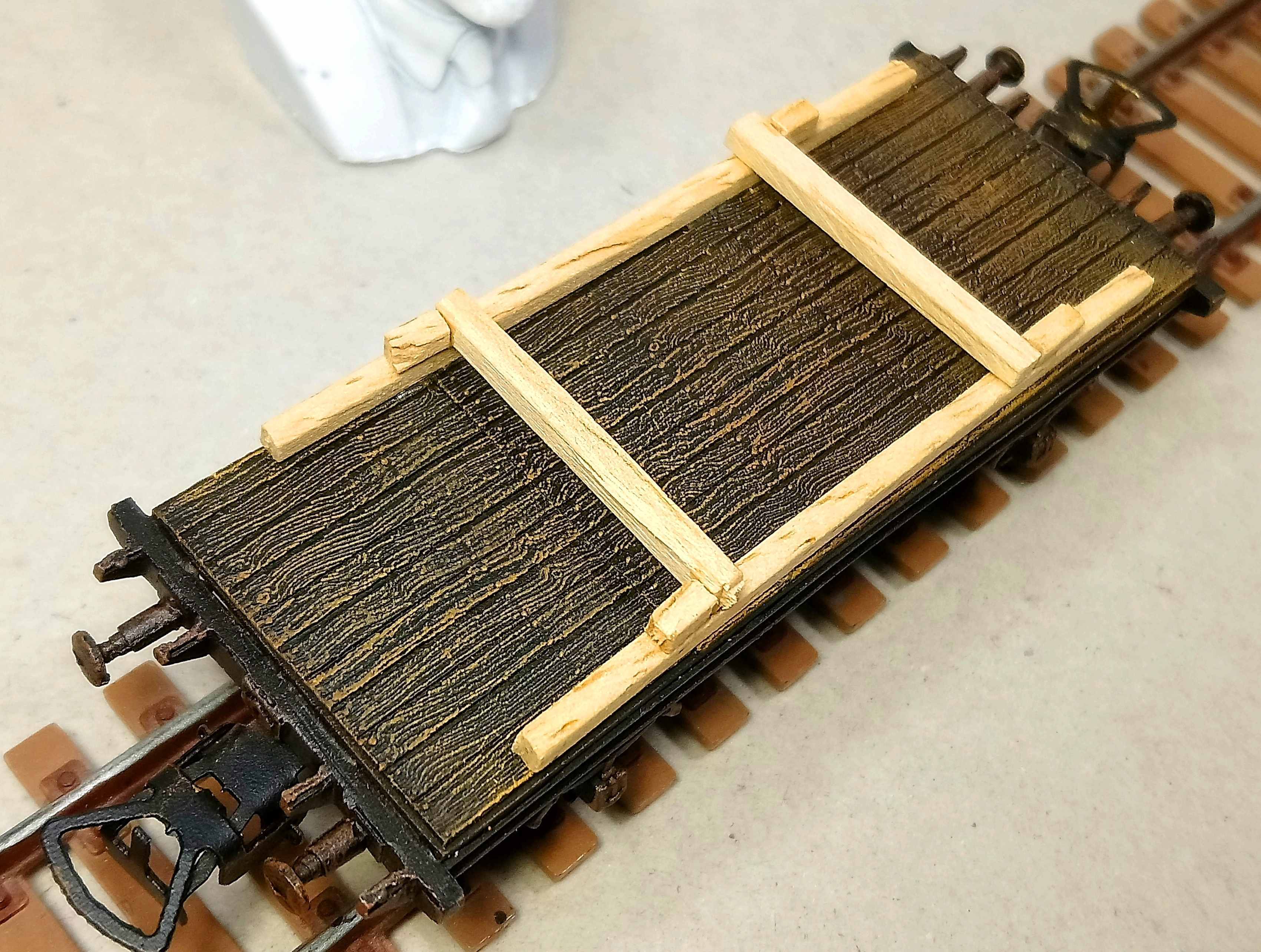 Из остатков смоляных платформ собрал пару спец вагонов.Одна для перевозки колесных пар(трамвайных).