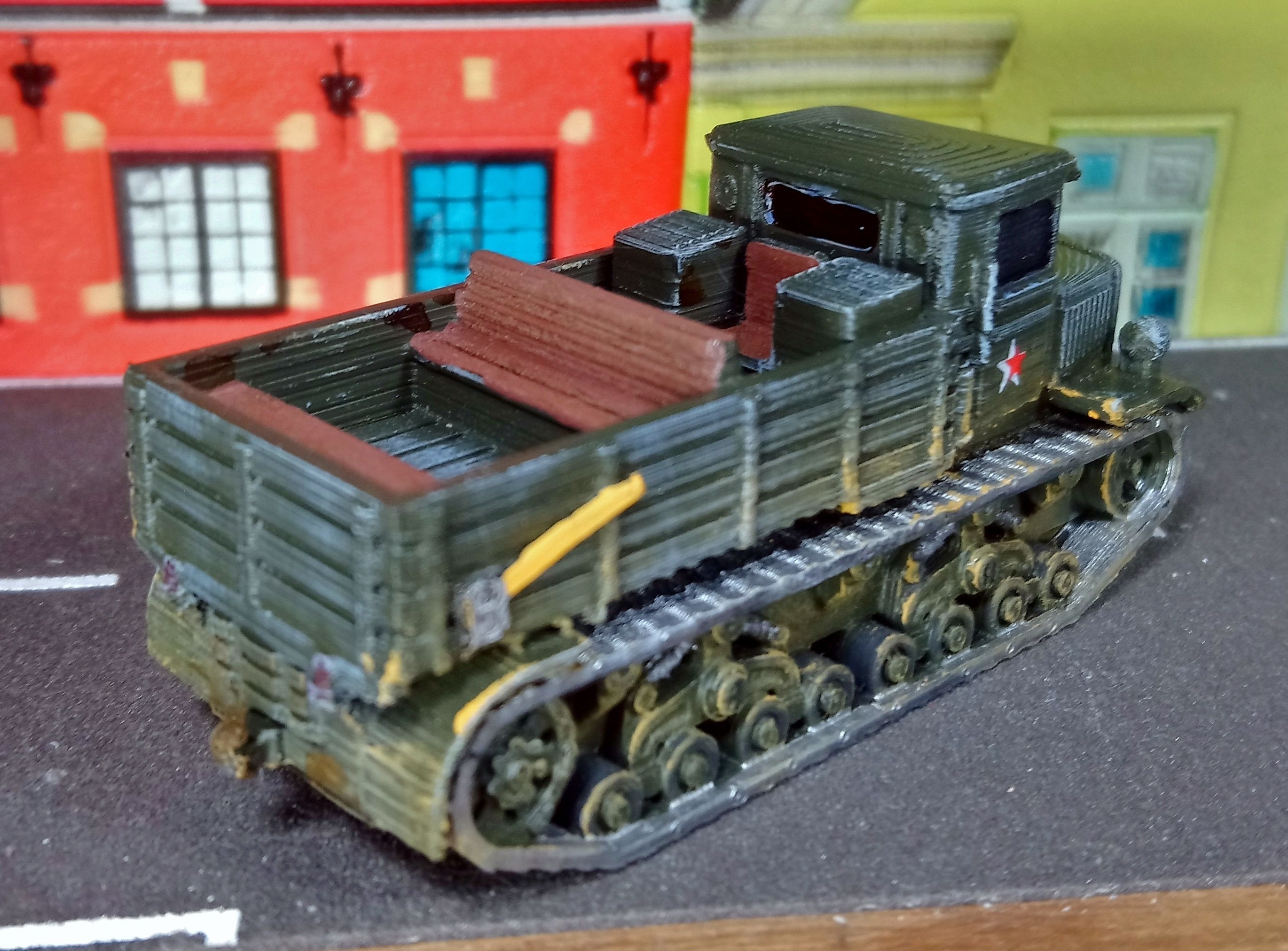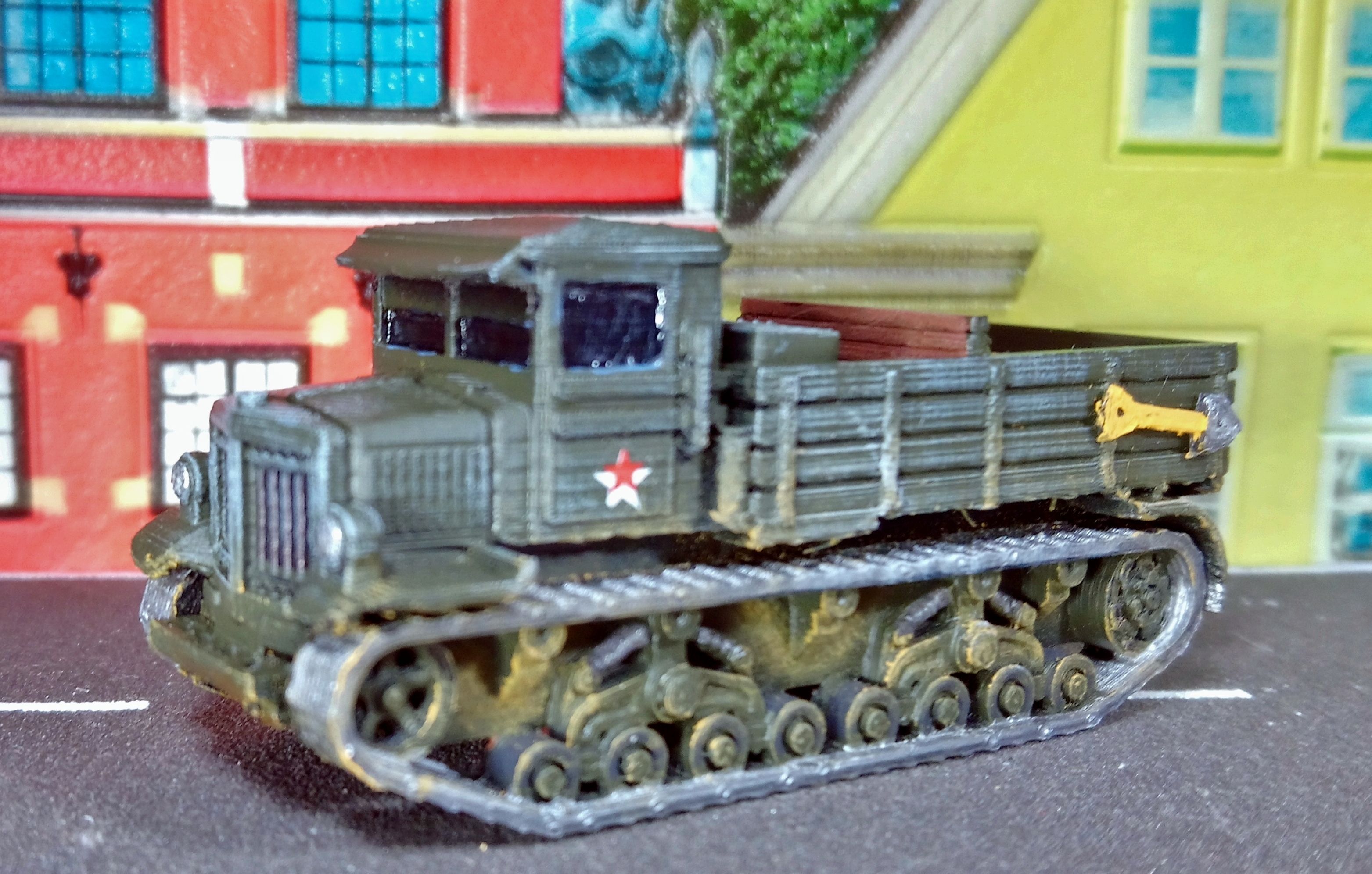 Покажу из своих моделей БТТ две, которые тут вроде ещё не светились. Масштаб довольно точно попадает в 87. Раскраска и модернизация не мои, такими мне достались. Может позже руки дойдут довести до ума. Фото делал для учета имеюшейся БТТ, так что за качества просьба не ругать.