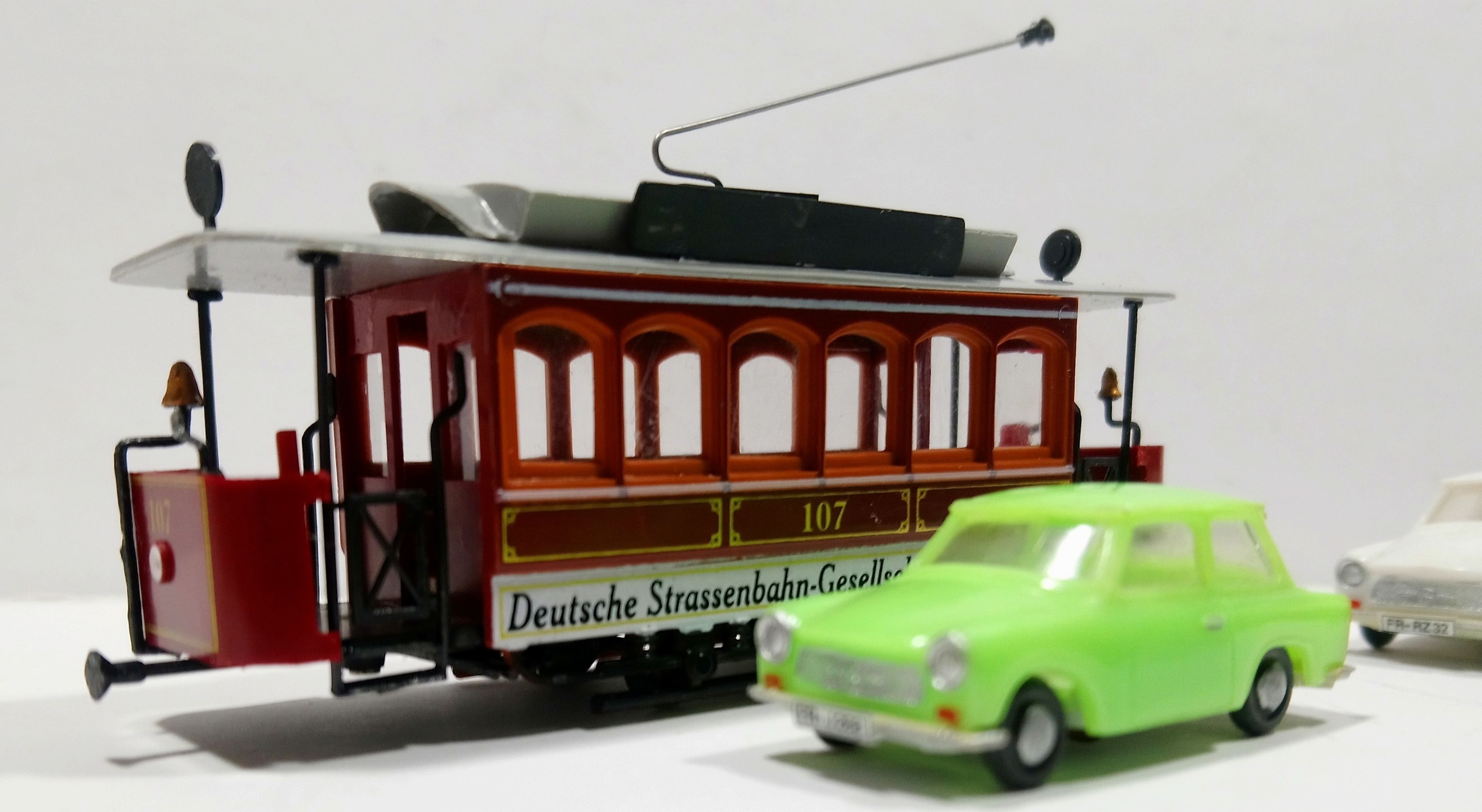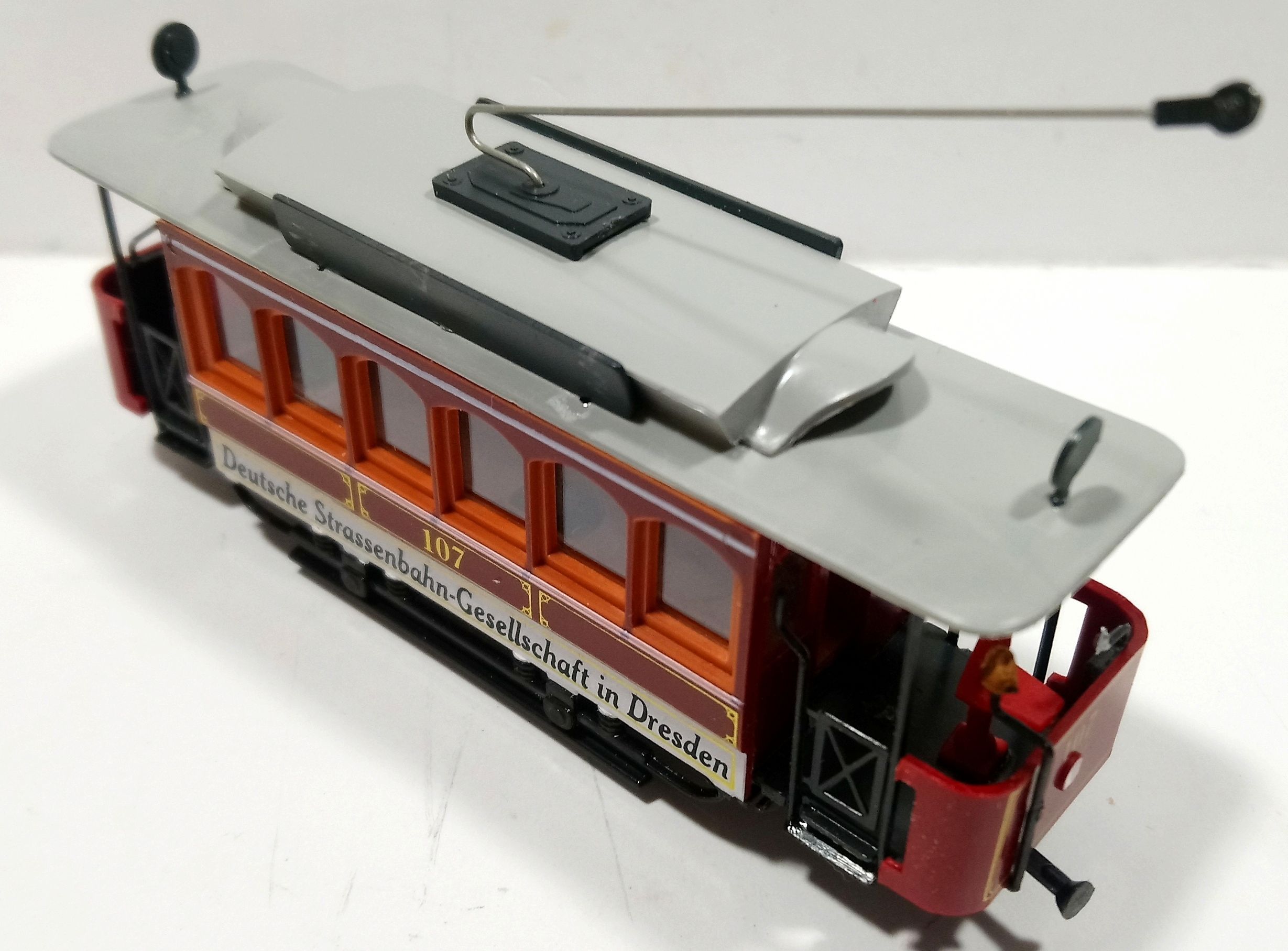 Изначально, это был набор из двух вагонов, в комплекте с деками (№64 и надписи как у прототипа - LEIPZIGER ELEKTRISCHE STRASSENBAHN):