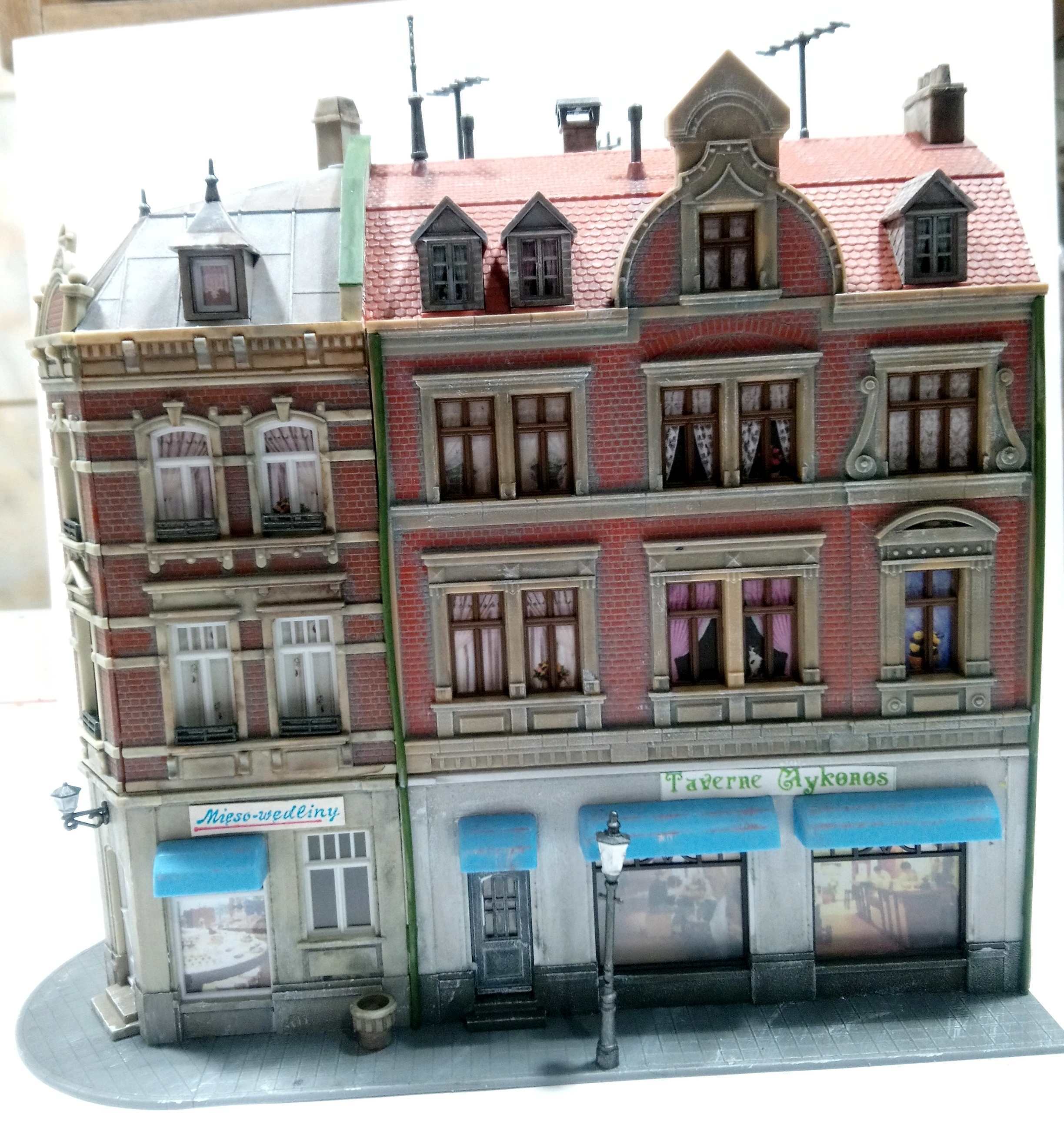 Пришлось местами проклеивать.После высеринга и сборки результат получился таким. Реально шикарная немецкая архитектура!Эффектное, крупное здание.Самое большое на макете.
