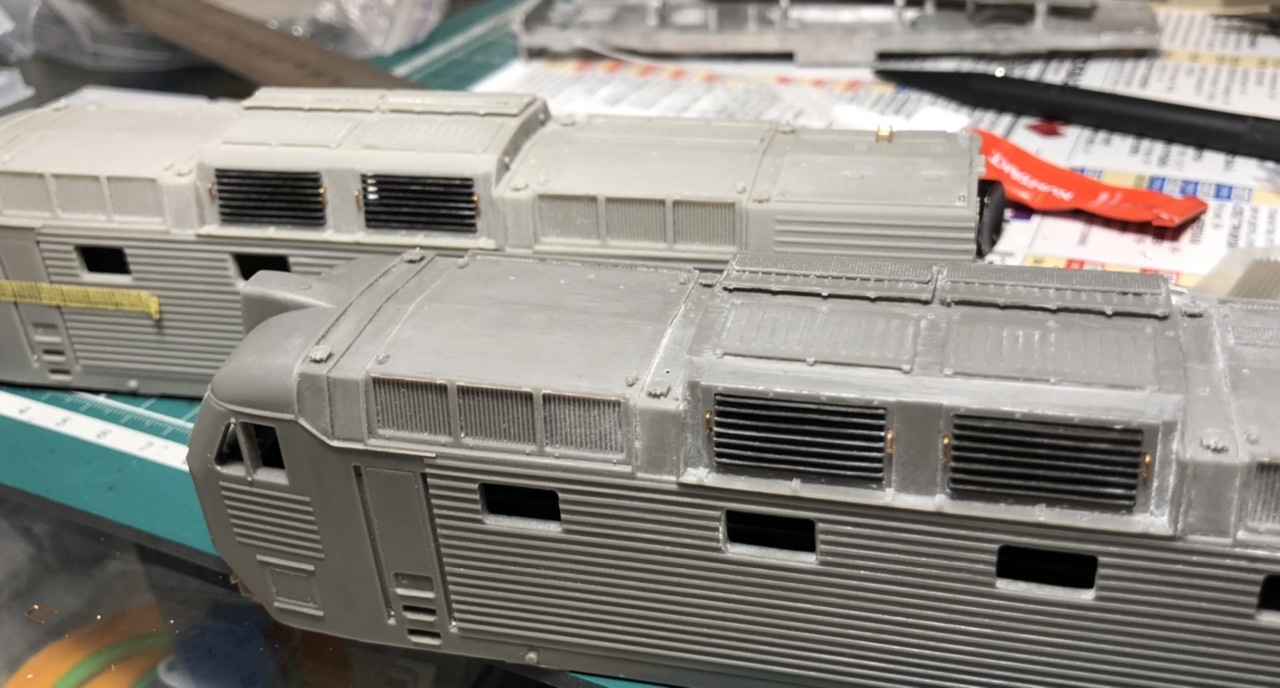 Так же на обоих кузовах просверлены все отверстия, кроме БФ и прожекторов, жду сверла нужного диаметра. Некоторые поручни были сразу вклеены.., поручни в кабины просто примерены, что бы посмотреть правильно ли просверлил отверстия..