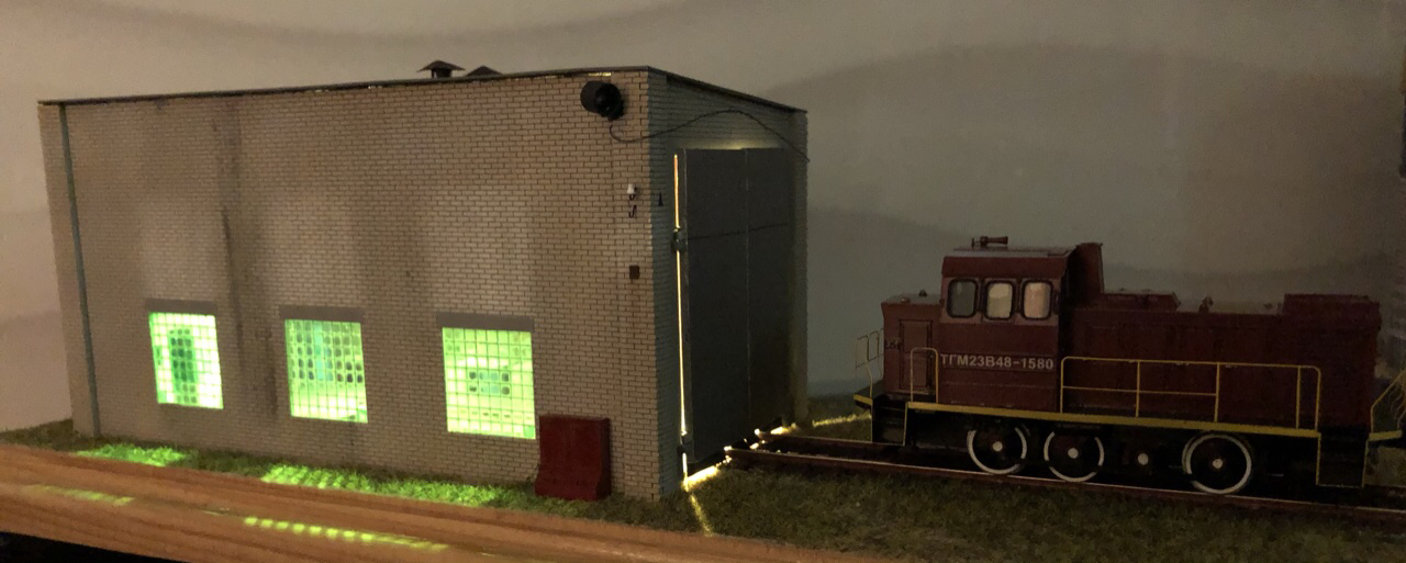 ТГМ23В48 от фирмы RTM и депо к нему, депо заказывал в макетомании, а так же внутренний интерьер в депо заказывал у Сергея Черевченко. Депо было собрано, пришлось крышу отрывать что б все во внутрь запихнуть.. ну а интерьер собирал и красил сам, как и само депо тоже красил сам..