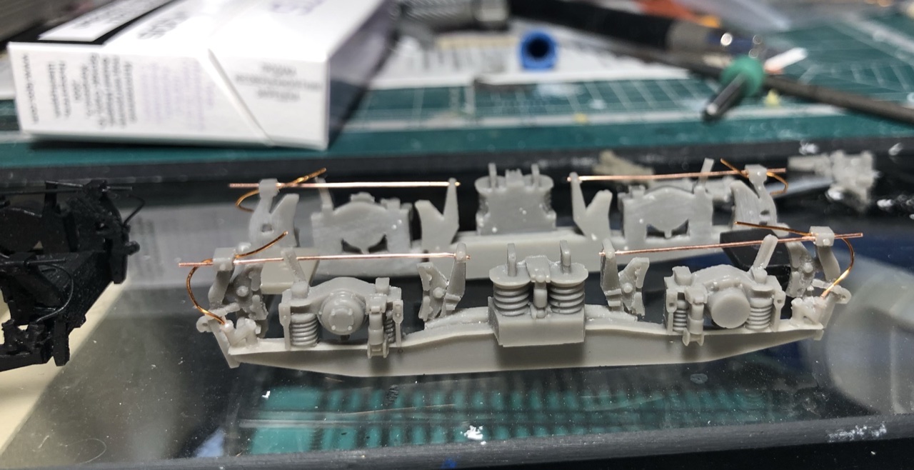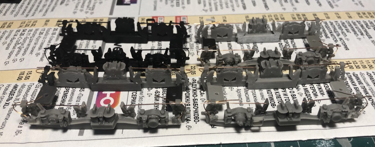 Были зачищены некоторые детали (боковины тележек, пластины под коробочки кади и нем шахты под межсекционные сцепки, песочницы, шланги и расцепители). Так же зачистил, подрезал и просверлил отверстия во внутренних стенках имитации экипажной части. Ну и собрал рамы телег (если вдруг что то неправильно называю - исправляйте)