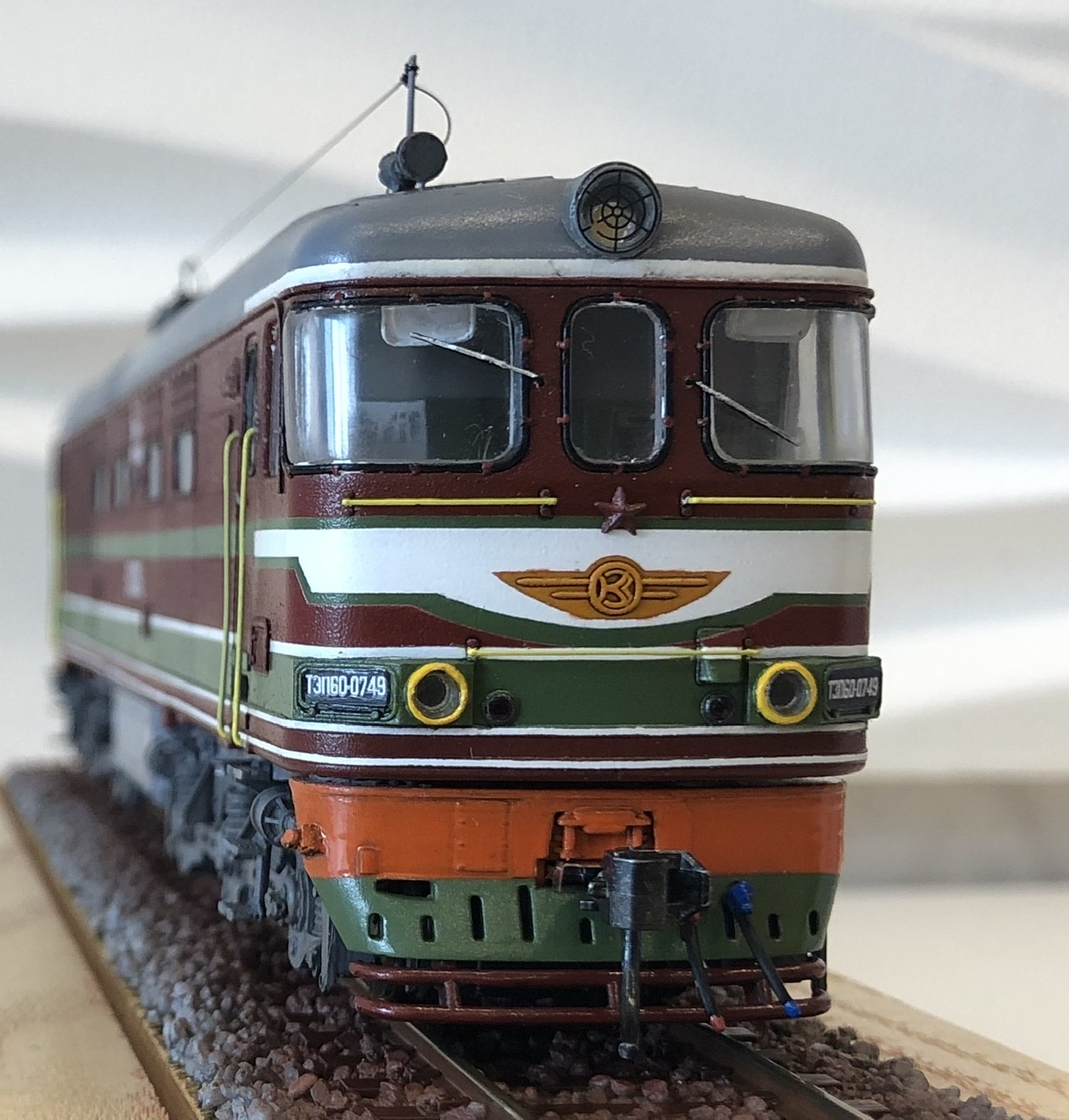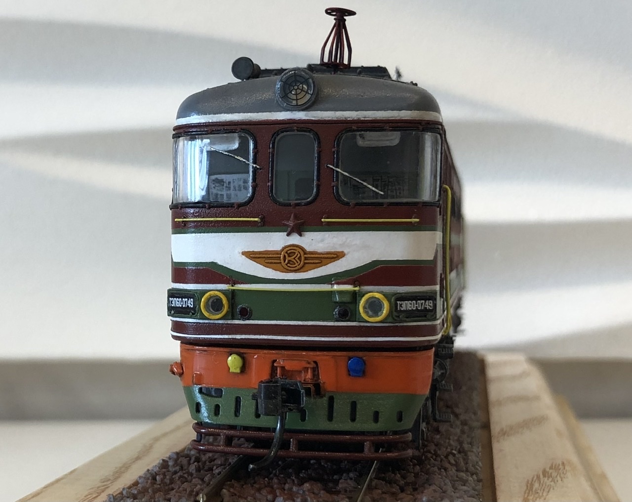 Самый большой косяк в покраске.. решил я акриловую краску покрыть лаком серии LP, что б покрытие было более прочное.. Когда покрасил и поставил заготовку на полку, через неделю примерно, начали появляться микро трещинки, краска LP, начала разъедать акрил.. Я не стал ничего исправлять, получилось что то типа кракелюра.. и как бы эффект не первого слоя краски, как на настоящих локомотивах, внутри трещинок краска светлее оттенком чем база.. Но всего этого с полуметра не видно..