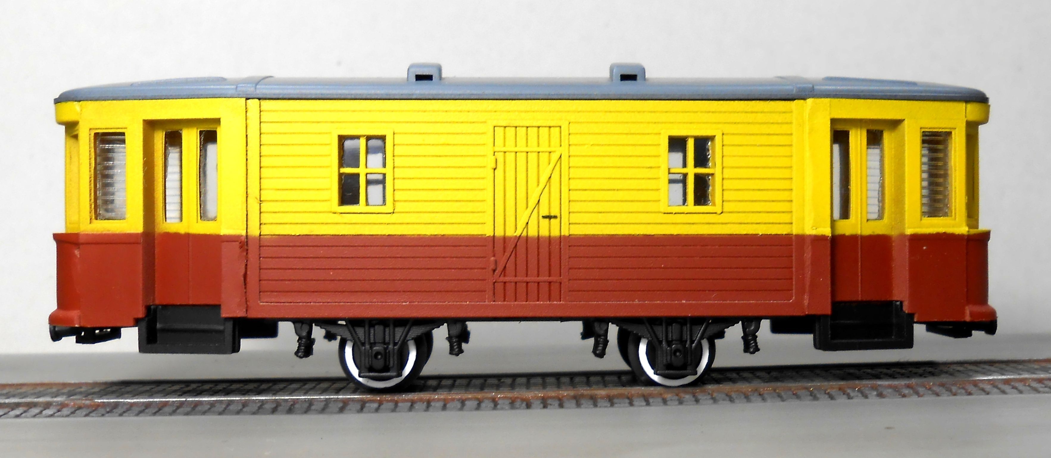 Фото. Только сейчас заметил что трапы не окрасил. Второй вагон еще не собран. А представленный на фото собирал лет этак 5 назад.