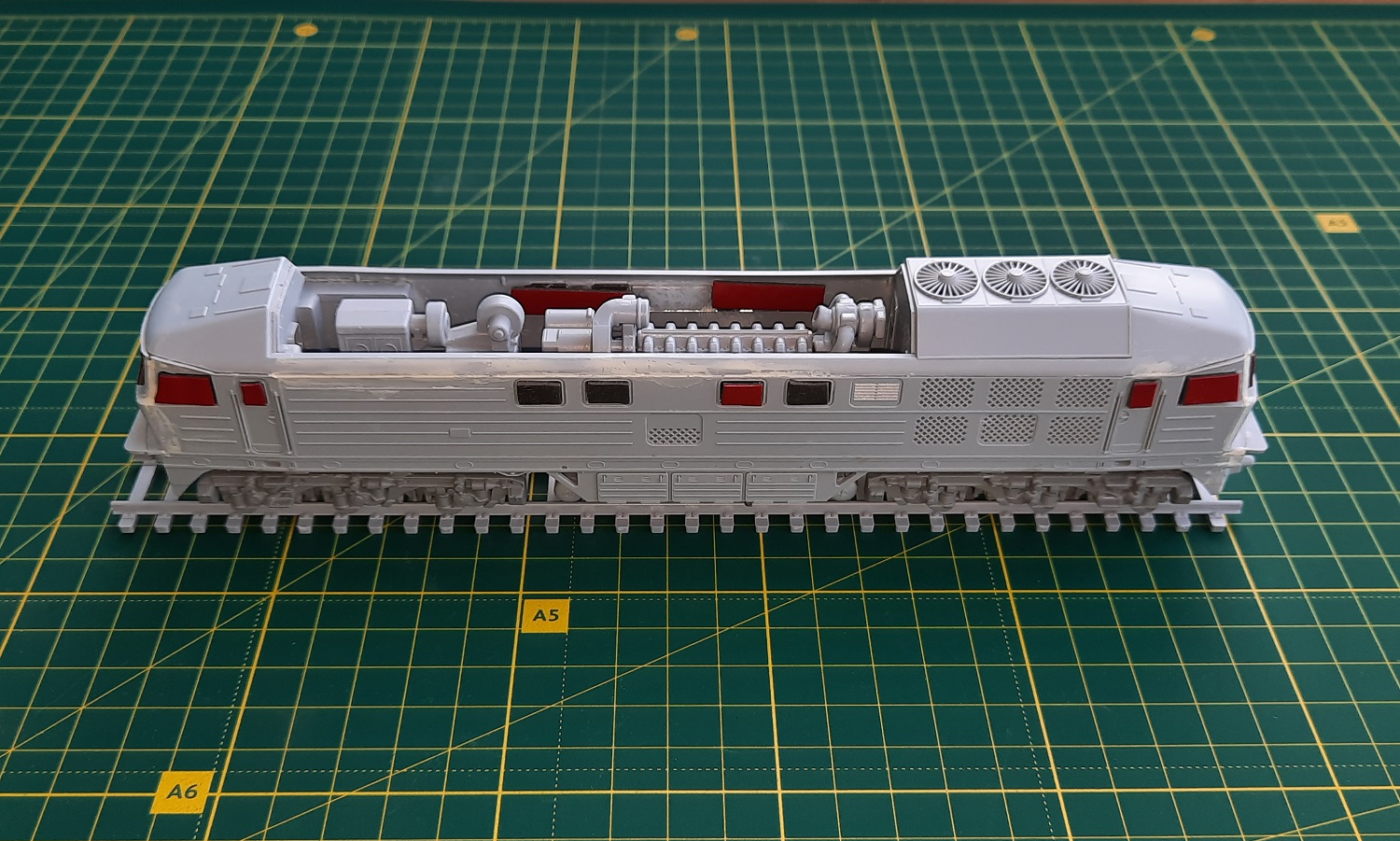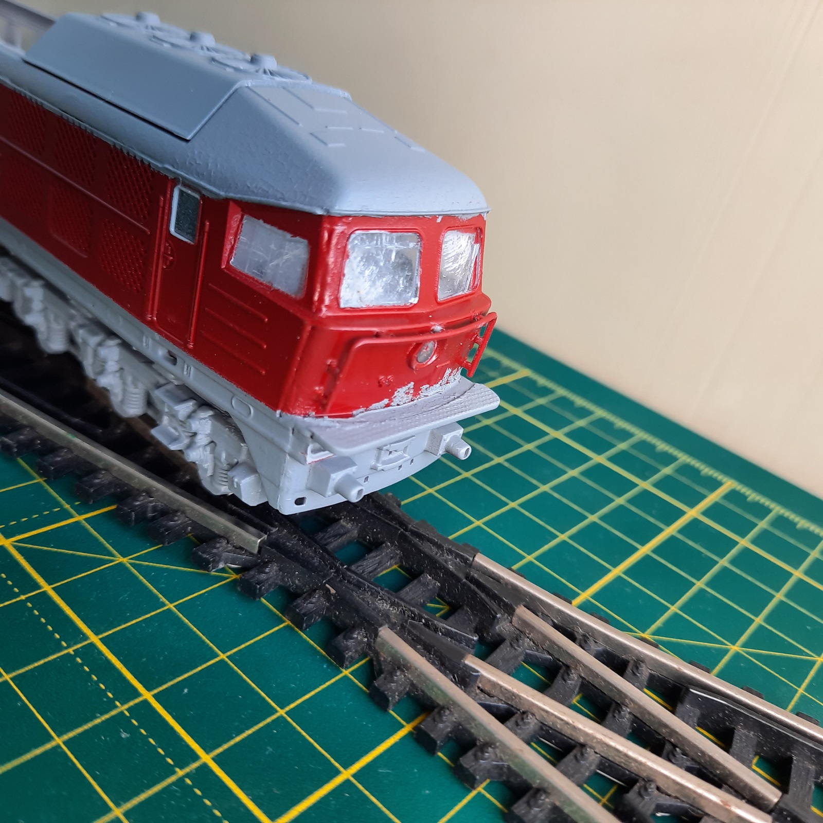 В основном собираю коллекцию PIKO H0 времен ГДР, но в прошлом году не удержался и приобрел кит по сборке стендовой модели тепловоза BR130 от Revell. Покупал на Скайлоте, набор мне достался в усеченном виде - не хватало нескольких элементов - основной панели крыши и части переднего щита одной из кабин, и ещё декалей. Собрал модель ещё в прошлый сентябрь, покрасить всё руки не доходили... в апреле этого года "руки дошли"...