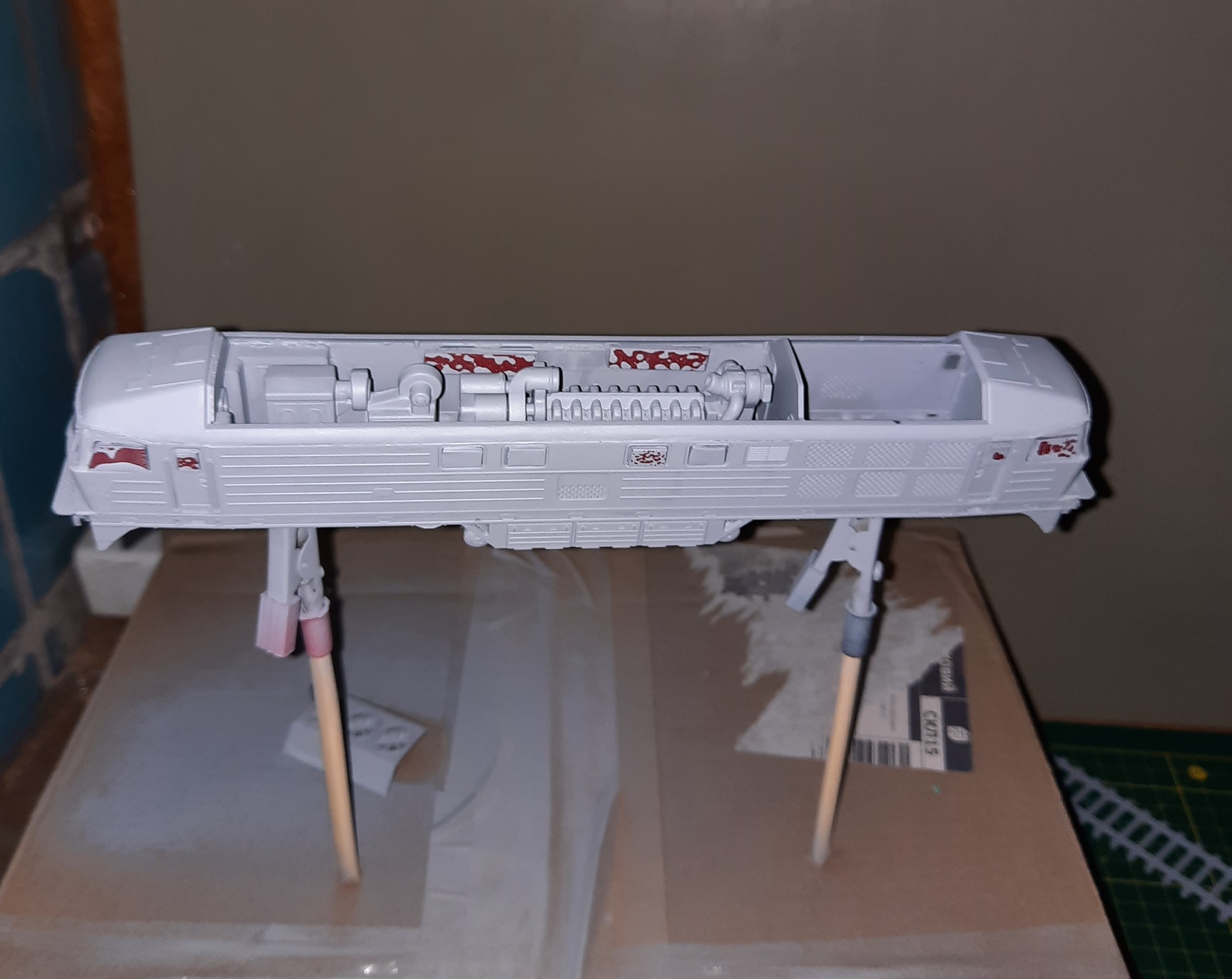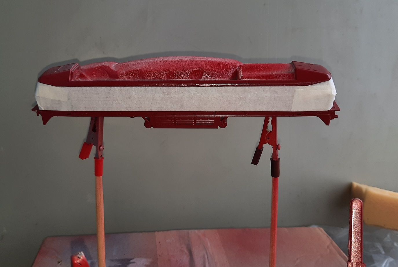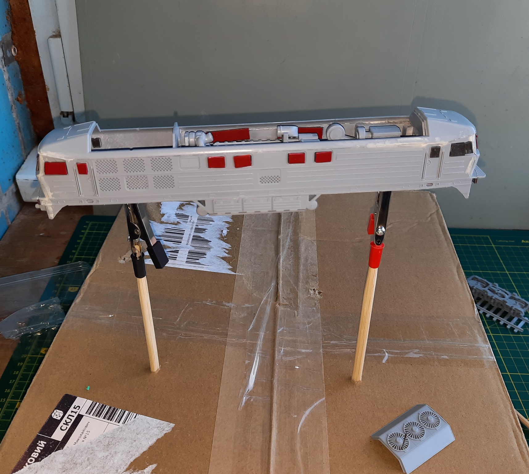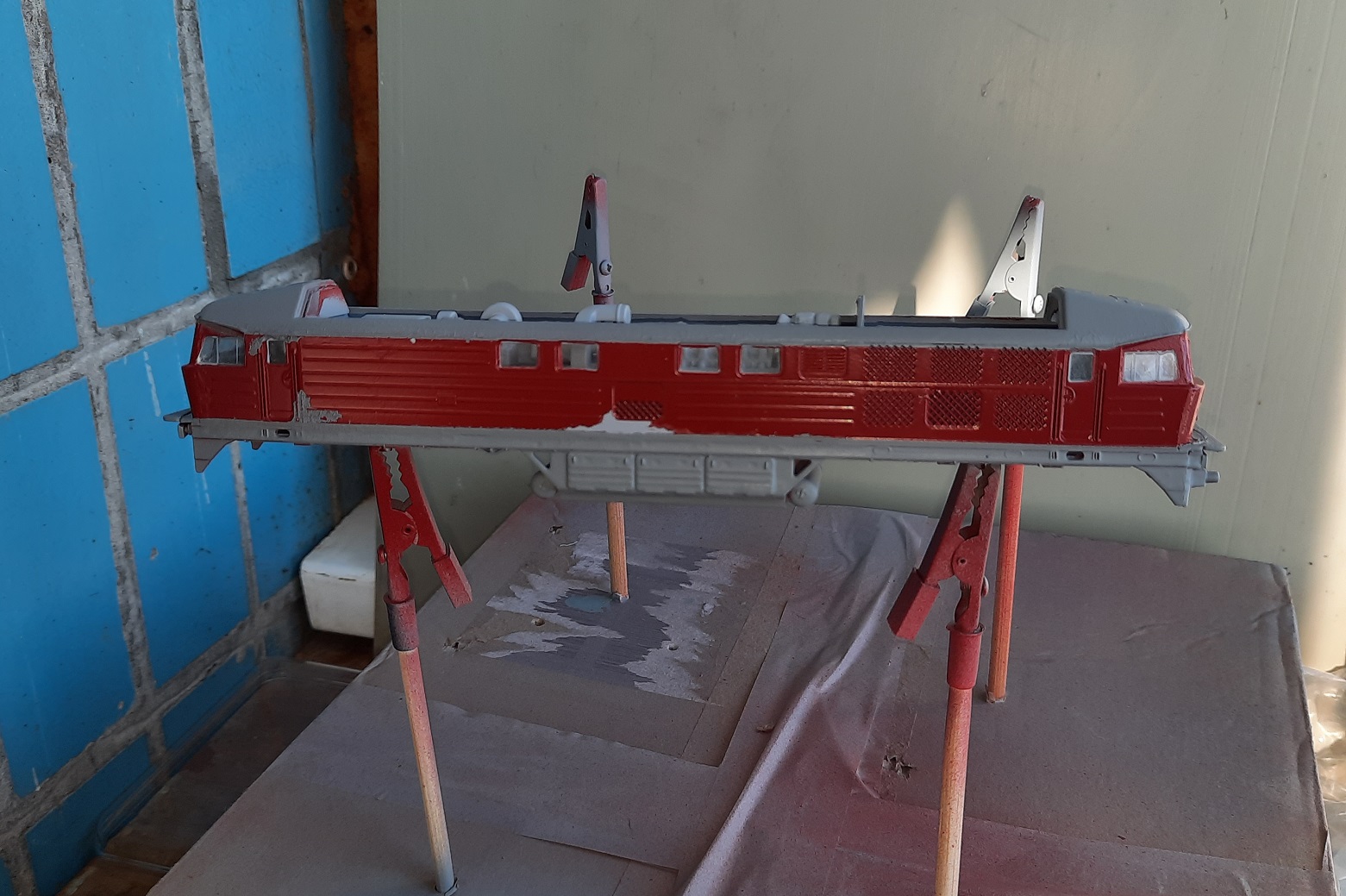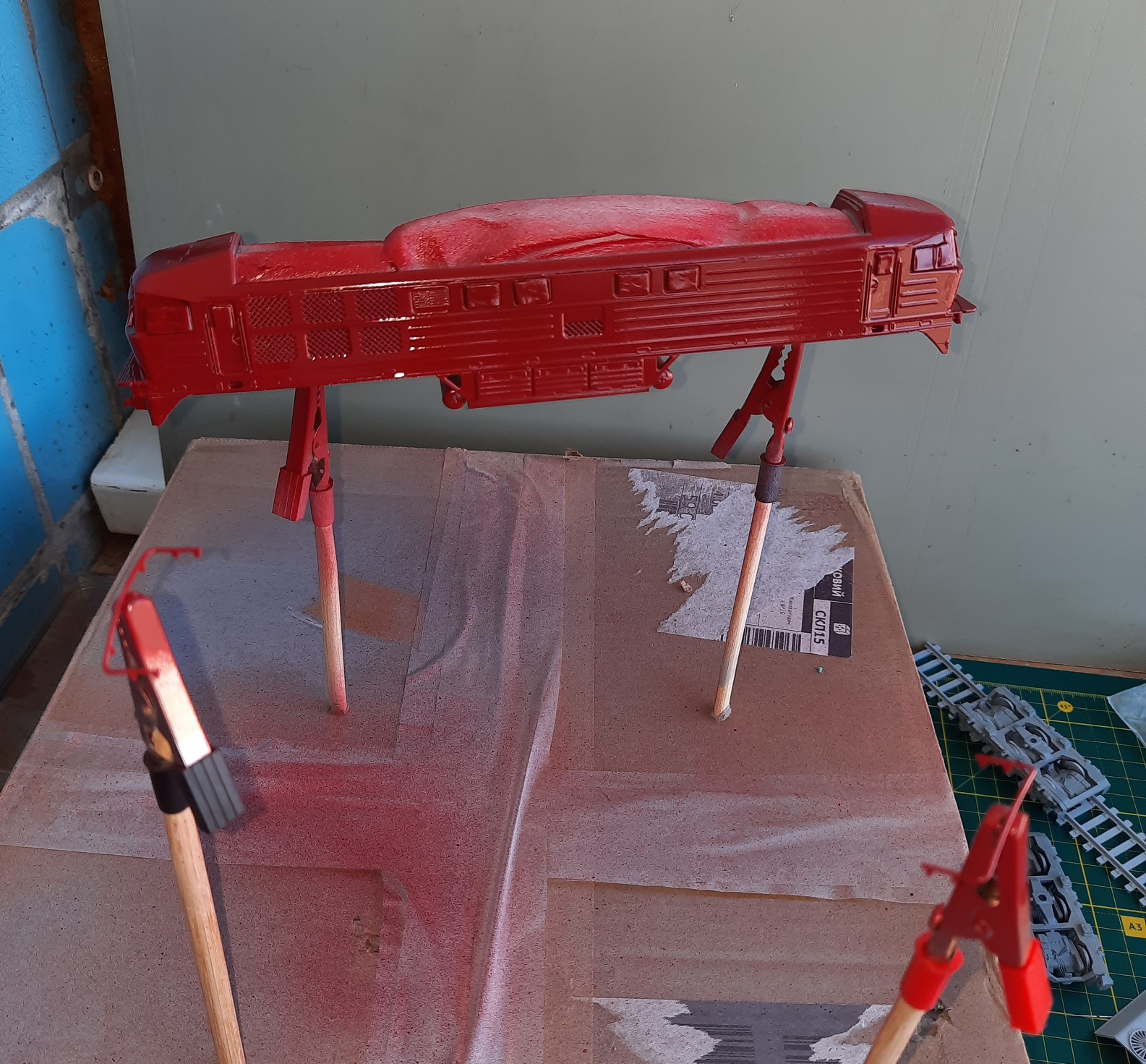 Пока аэрографом, компрессором и прочими девайсами серьезного моделиста не заморачиваться, просто купил аэрозольные краски в ближайшем Эпицентре... серый грунт, серая и вишневого цветов краски...