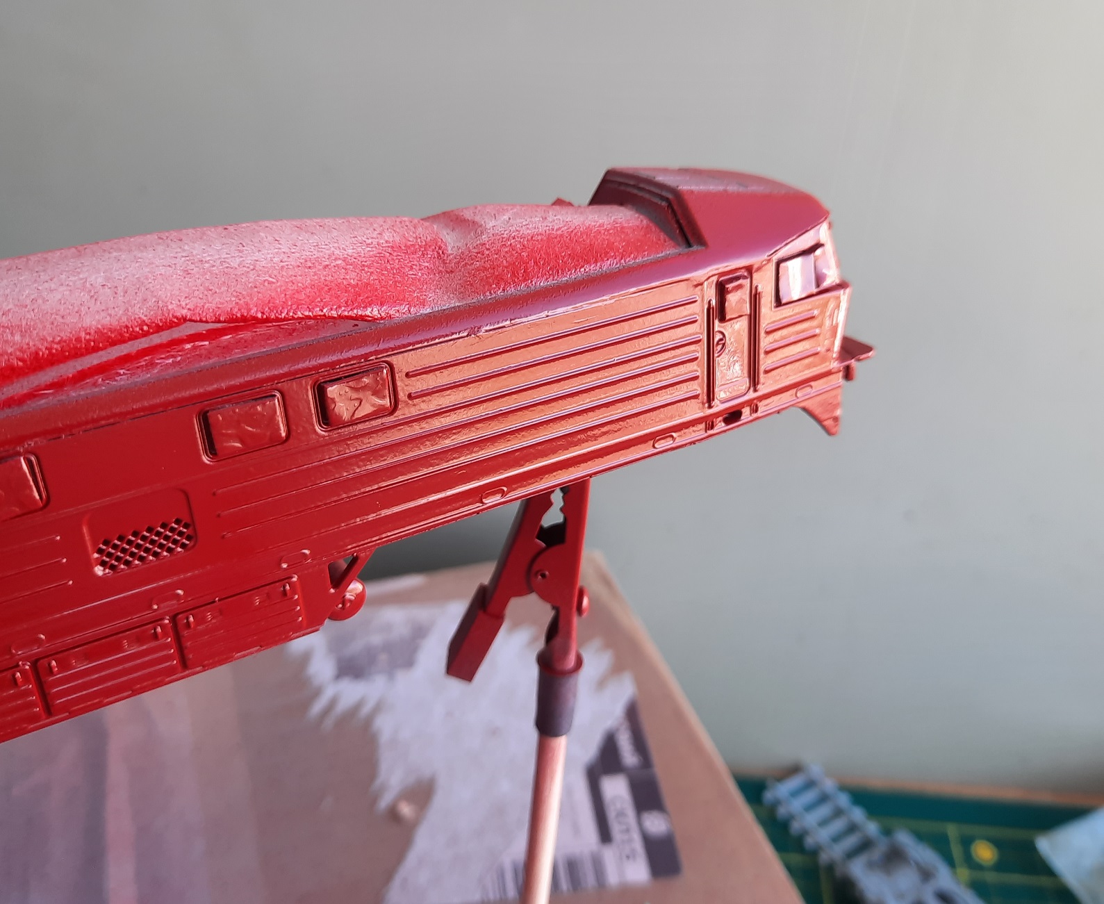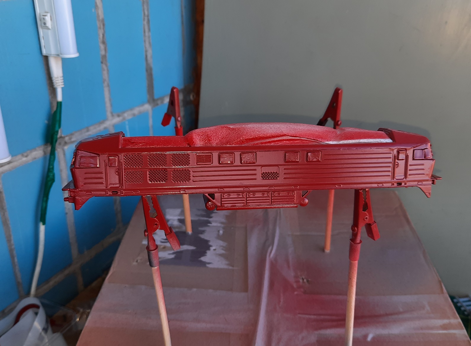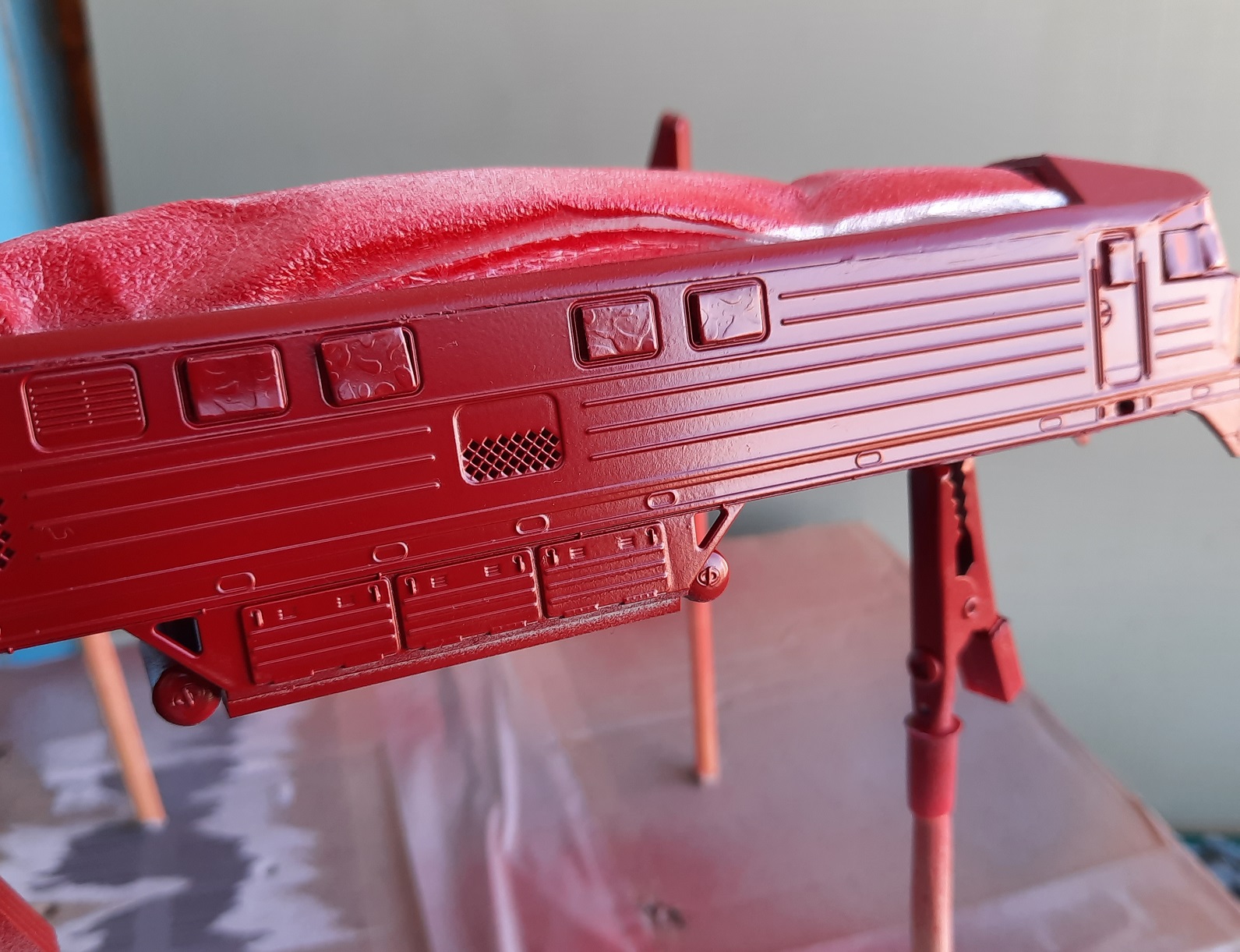 Спасибо за сдержанную реакцию, коллеги!))) Я из тех людей, что учится на своих собственных ошибках)). Грунт мне удалось положить довольно тонким слоем, и серую краску, а вот красная потекла. Теперь мне понятно, что для столь мелкого и рельефного предмета и капли краски в аэрозольной струе должны быть мелкие))). Думалось - а вдруг у меня получится и балончиком. И я пробовал дуть сначала мимо, а потом понемногу подносить струю к модели, но это ведь расход краски какой пустой!)) В общем аэрограф в планах.