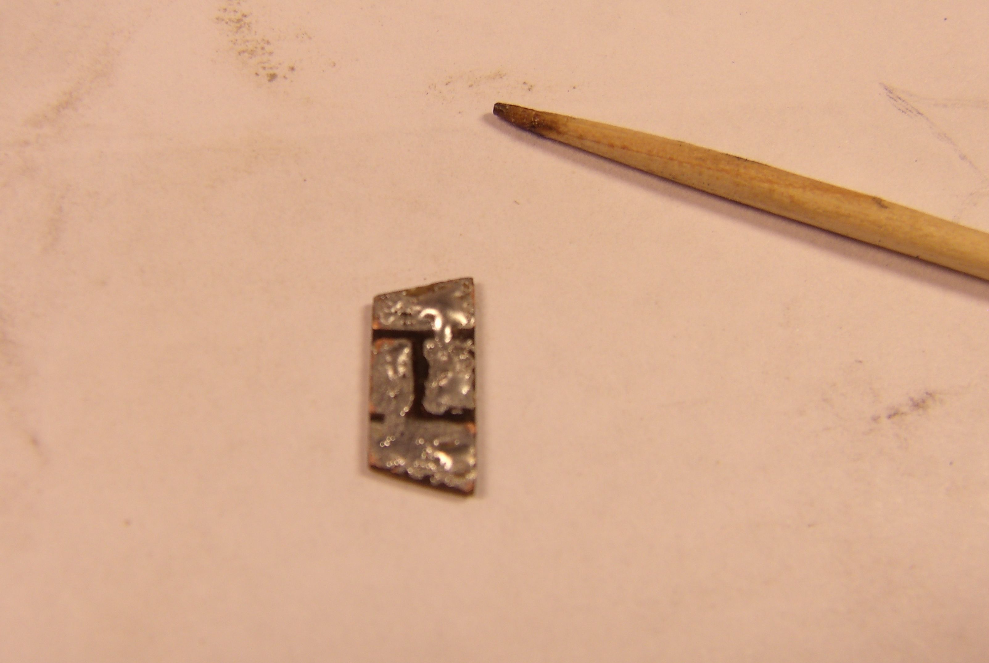 Изготовлен из упругой! листовой латуни (или не латуни, но очень похожа), вырезана полоска, вставлена в пропиленный паз, и припаяна к микроплатке.