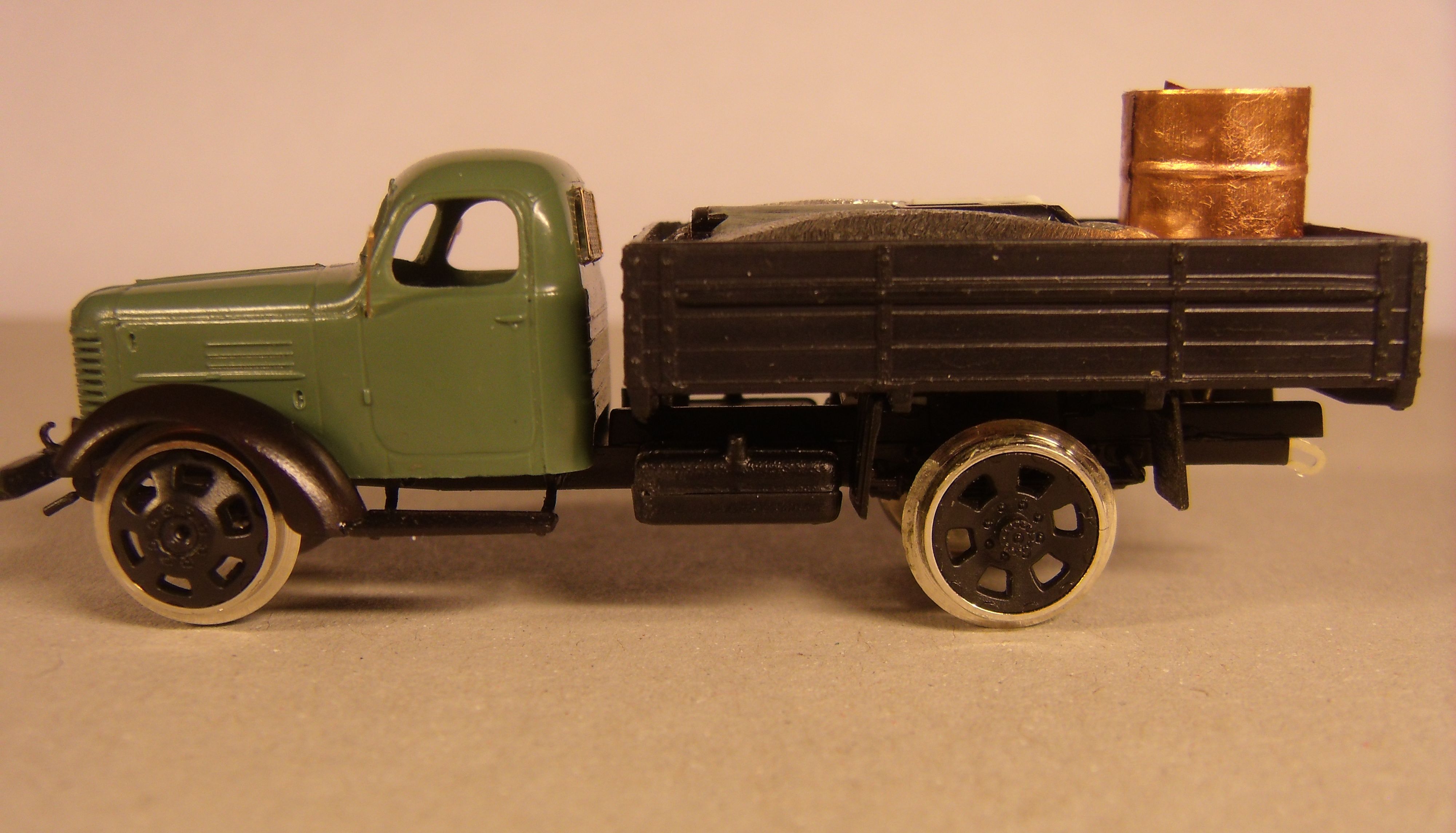 Тентом накрыть - это я тоже обдумывал , сделать весьма просто, к грузу тогда можно попроще отнестись, но машинка то рельсовая, такие использовали сразу после войны, из-за сильной нехватки локомотивов, они в основном занимались всякими хозяйственными делами, и поэтому я решил сделать груз в виде кучи щебня :idea: ( сверху его завуалирую присыпкой на клею).