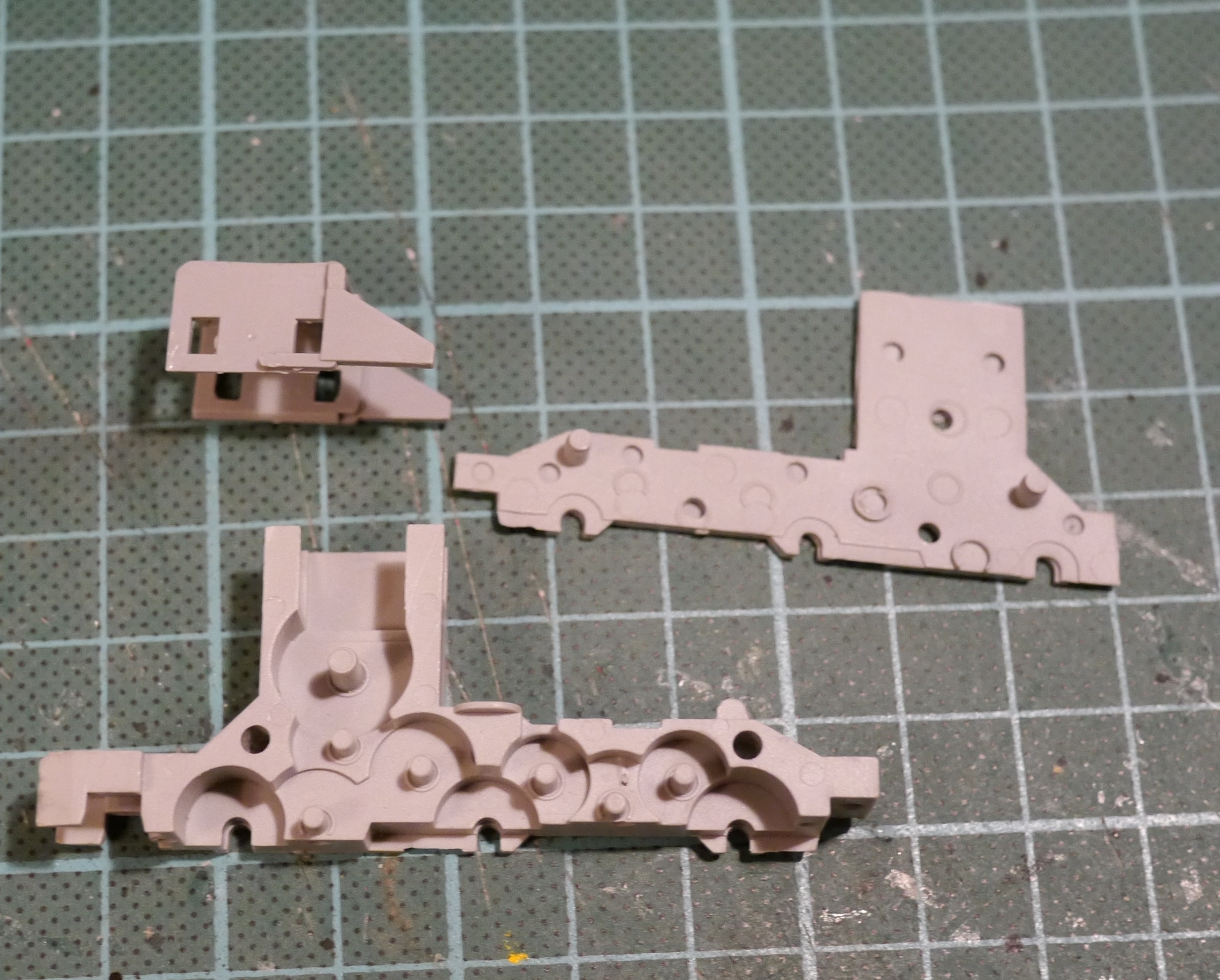 В комплект входили кузов, рама, боковины телег, корпуса редукторов. Общее впечатление от качества литья было очень позитивное. Складывается субъективное ощущение, что это не "пиратка". Например, сомневаюсь, что кто-то бы заморочился переливать редуктор: