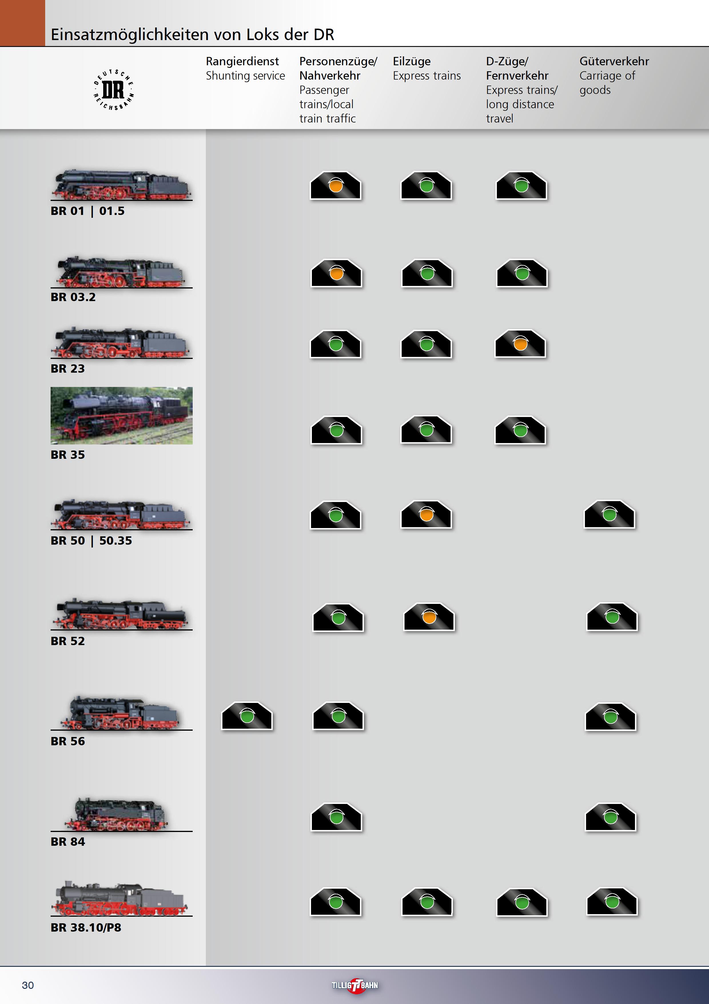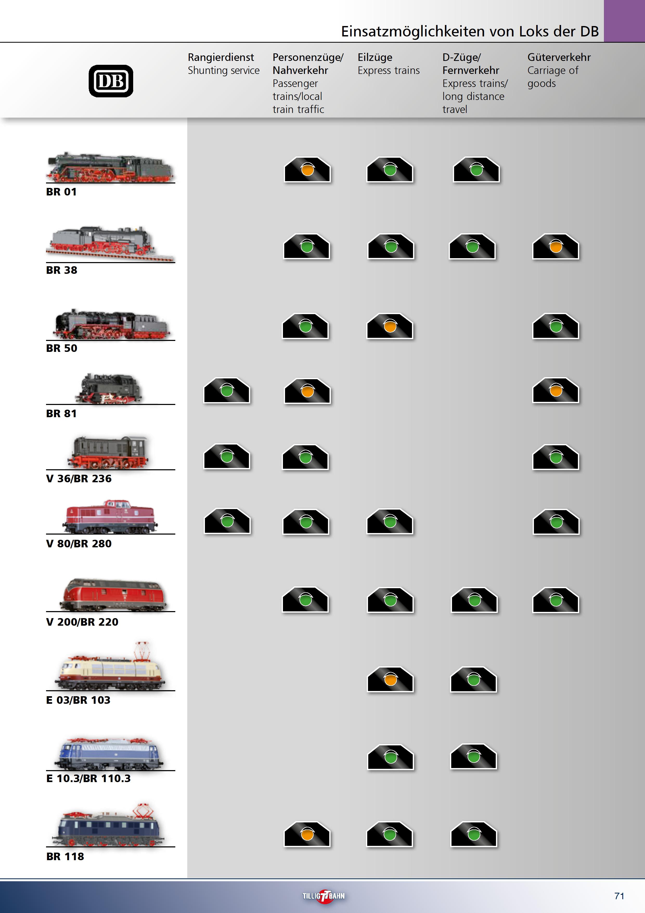В каталогах Tillig наводилась інформація про составність рухомого складу на прикладі ассортимента компанії: