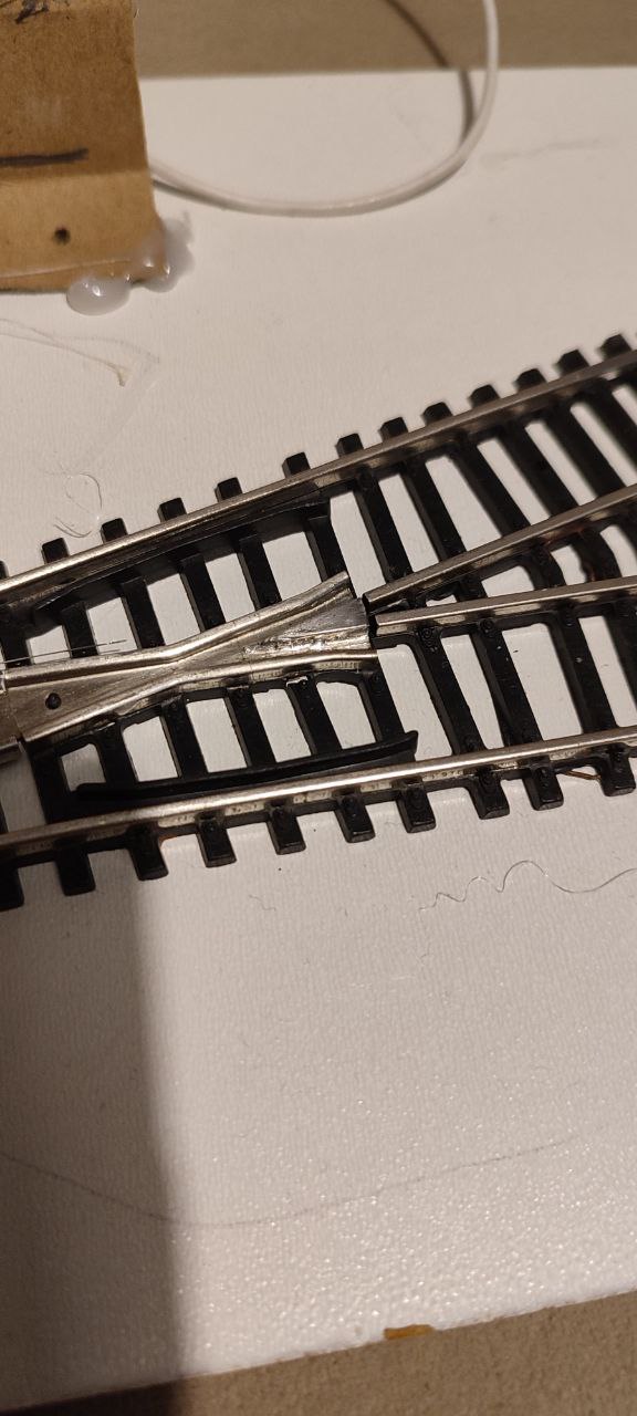 Сталкивался и с новым путевым материалом. Дело в том, что у модельных колпар не всегда правильный конусный профиль, и в месте, где расходятся рельсы на самой крестовине, такие "неправильные" колёса одновременно находятся на двух разных рельсах. Я эти места аккуратно замазывал бесцветным лаком для ногтей жены (пока она спит и не видит)))))