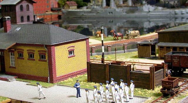 И макет уже со стажем. У меня фотографии с этого макета хранятся с 2012 года и наверняка макет был построен ещё раньше. Другой вопрос, что при таком сценарии корабли и порт становятся доминантой и идея ЖД макета несколько придавлена