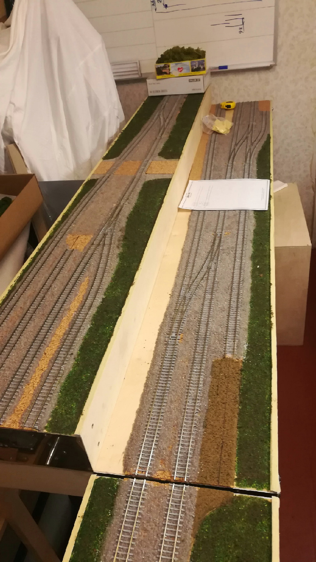Ввечері після основної роботи майже кожного дня по декілька годин в кімнаті 3,9 х 3м по краях з одного боку заставленою коробками, а з іншого обладнанням та верстатами ми в двох з Іриною будували 5 модулів по 2м довжиною плюс розворотне коло 3 х 2м. Самий треш був в тому, що два з'єднаних між собою модулів від стіни до стіни не вміщались, а дома хозяйнувала кицька тому кожний вечір модулі роз'єднували щоб закрити кімнатні двері. Поки їхав рейковий матеріал (майже 2 тиждні) я встиг зпроектувати підмакетники, замовити необхідну фанеру та умовити хлопців, що мені роблять порізку взяти в работу моє замовлення позачергово. Паралельно виготовляв модульні фланці що теж зіжрало трохи часу. Також було пару вилазок на станцію (той іще квест...), шоб зробити фото та поміряти "кроками" розміри будівлі вокзалу що був збудований 120 років тому.