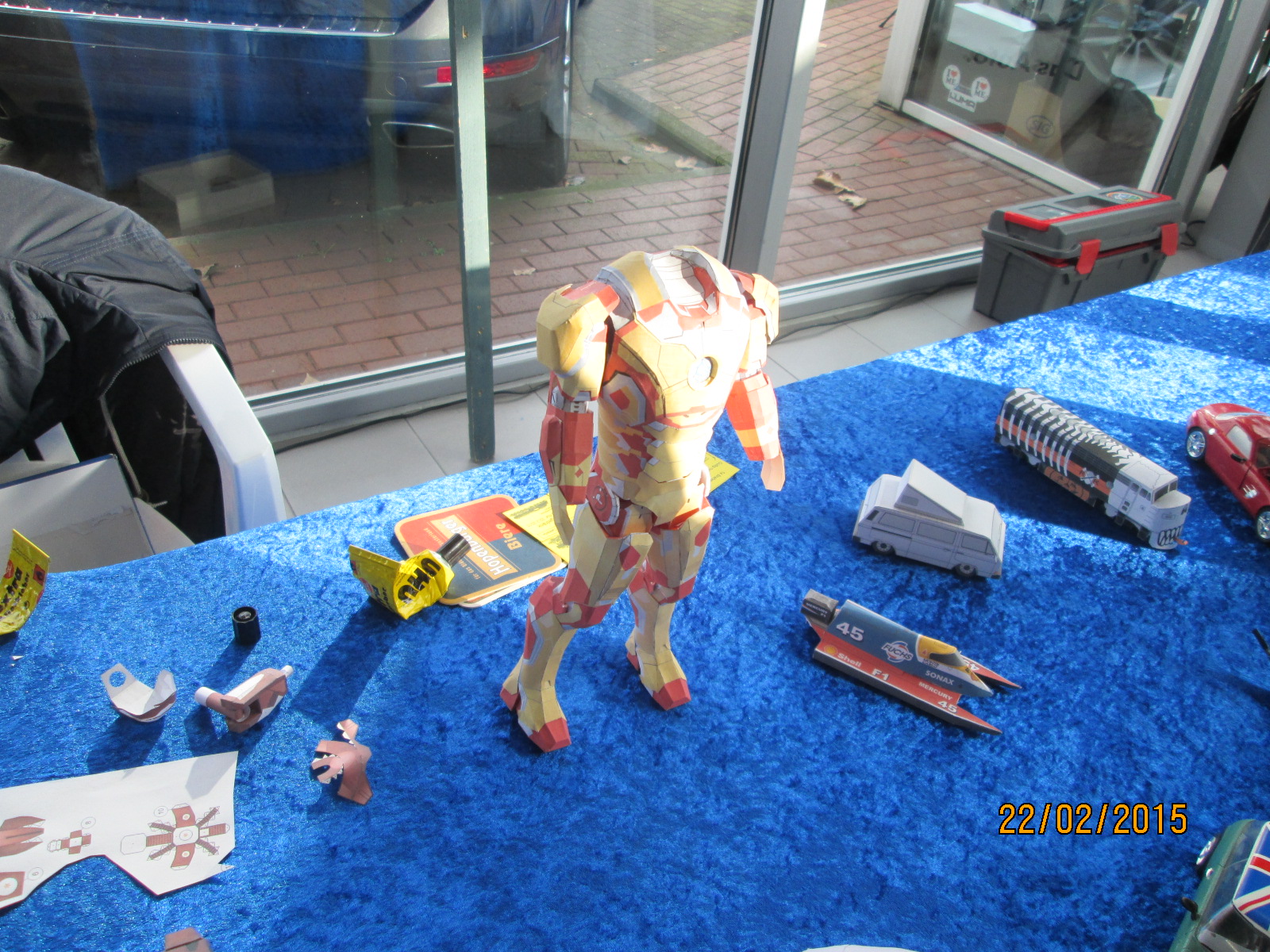 что и нтересно, так это не всегда удается увидеть бумажников. в прошлый раз видел сборку на месте, в этом году уже стоял готовый костюм "иронмана". фото прошлого года