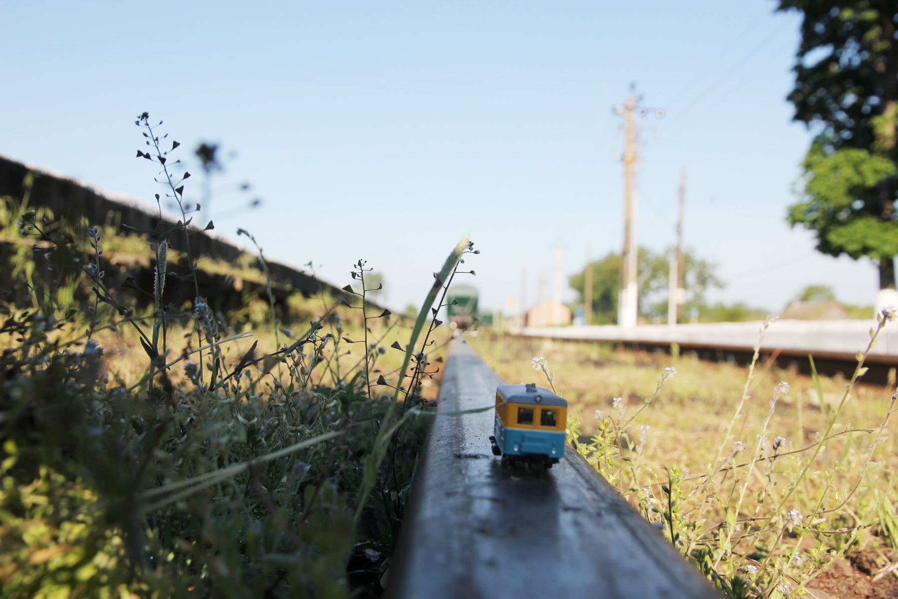 Дрезина пізніх випусків, з металевою трансмісією, яку "Пєрєсвєт" готував під ТГК-2, але не злетіло. Але до чого я веду у цій темі - прийшла мені в голову ідея брати її з собою у різні поїздки де присутня залізниця, благо, модель дуже компактна і без зайвих запчастин, які можна поламати. Отже - перша поїздка на Полісся відбулась