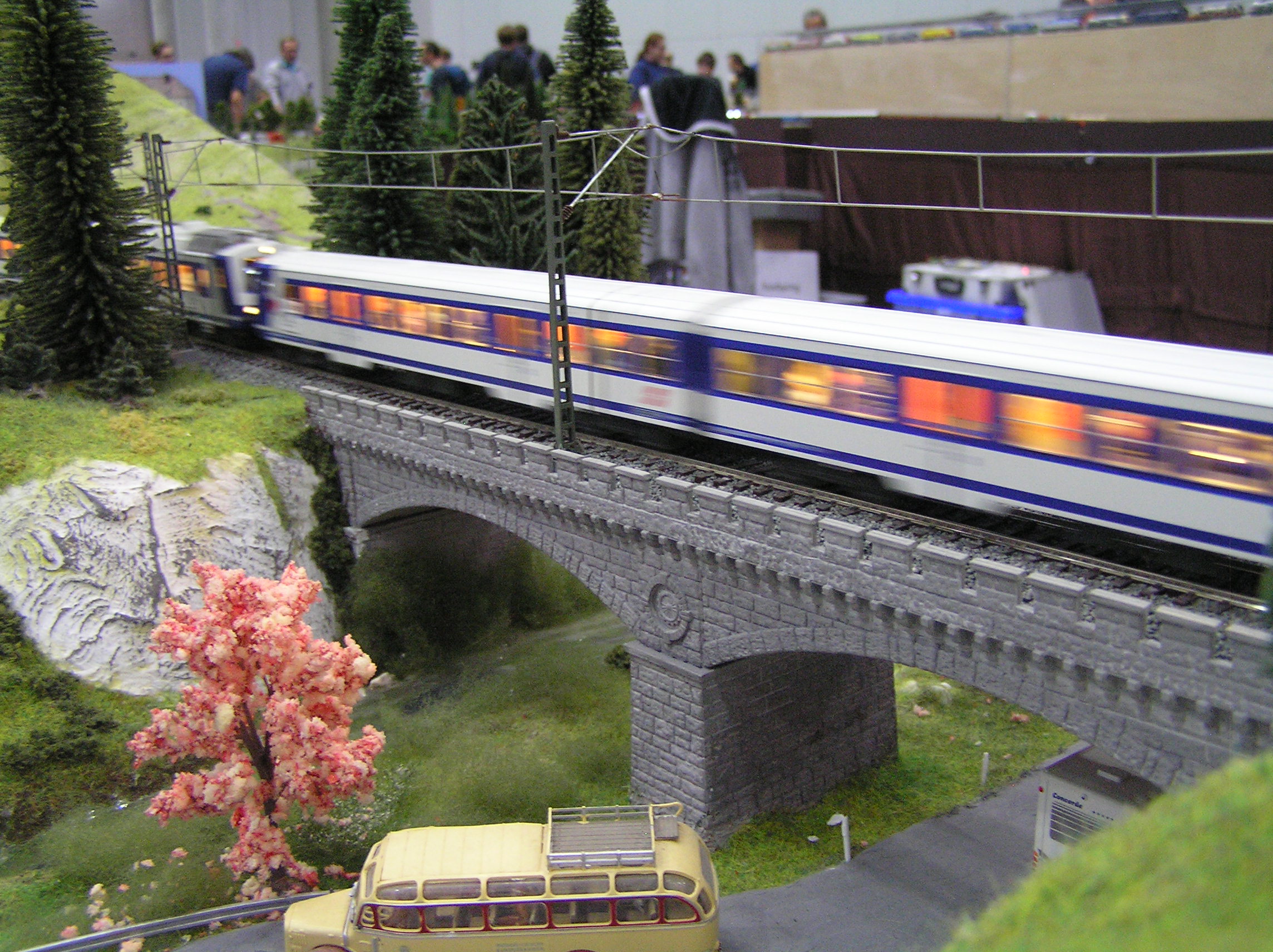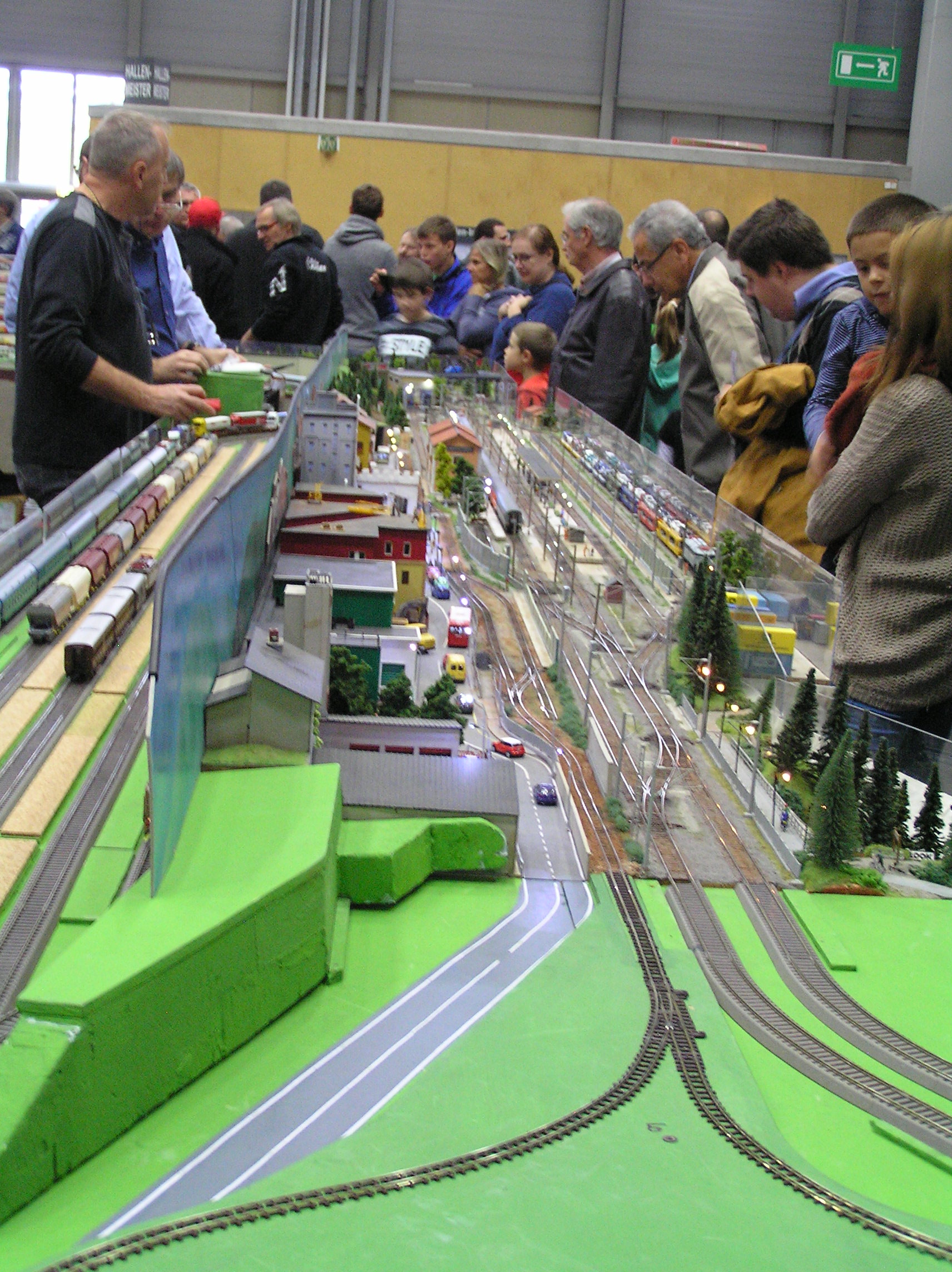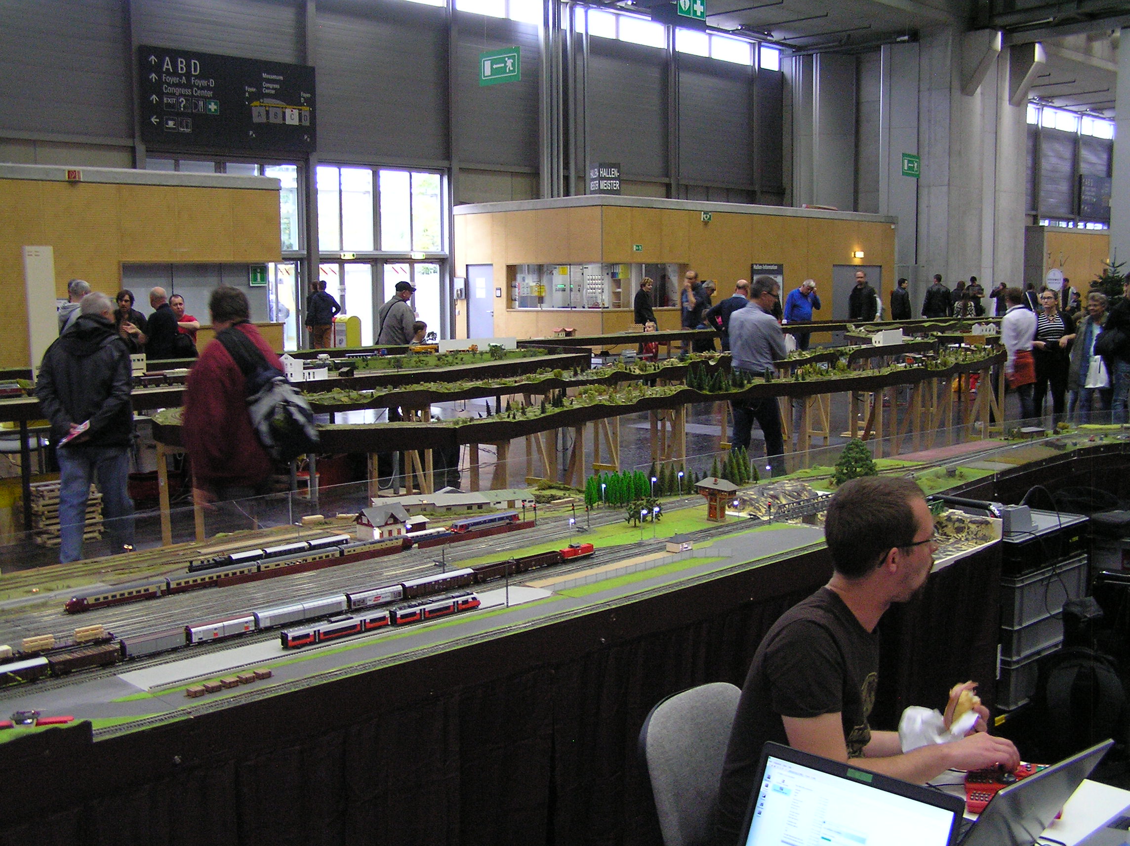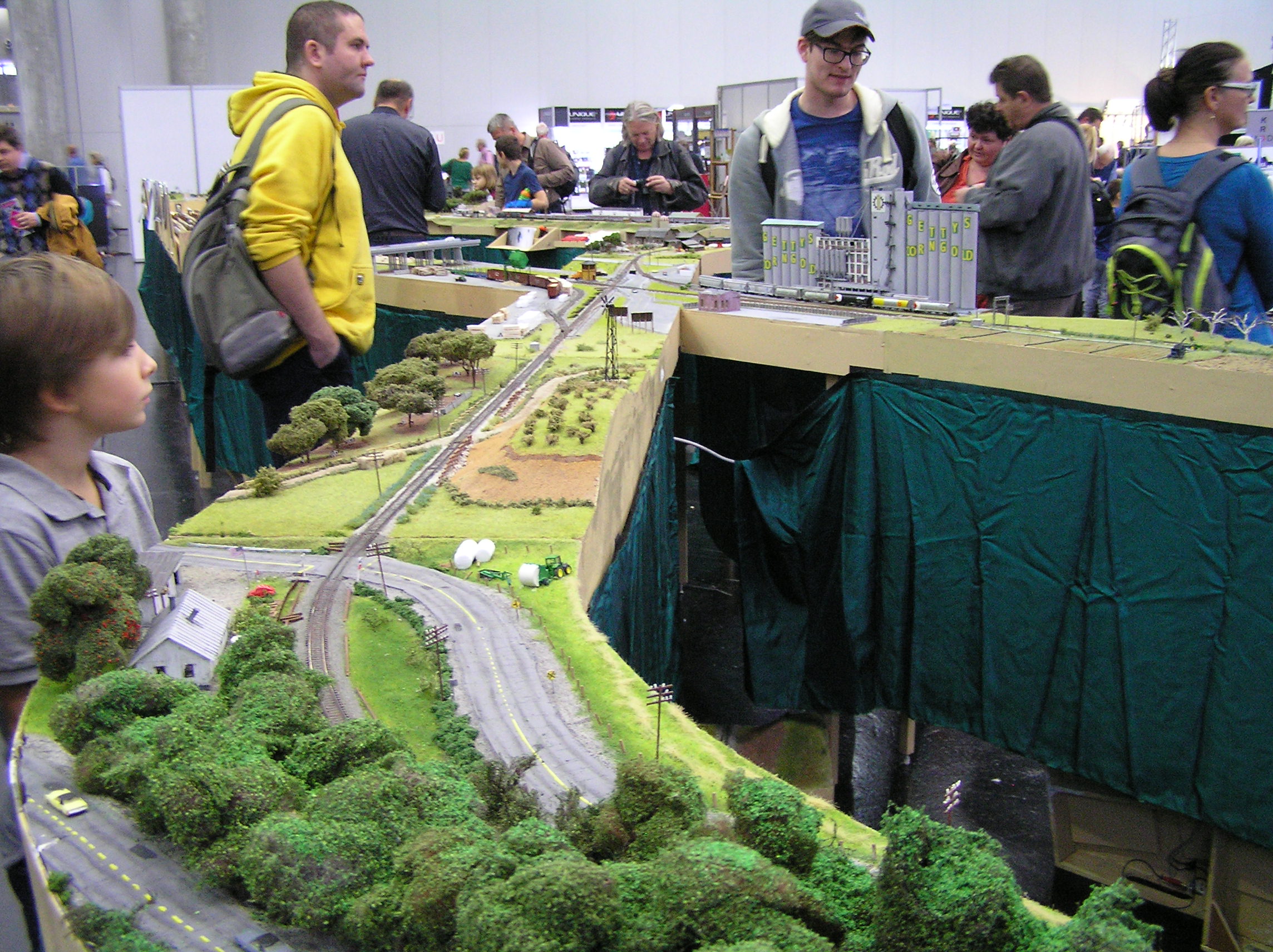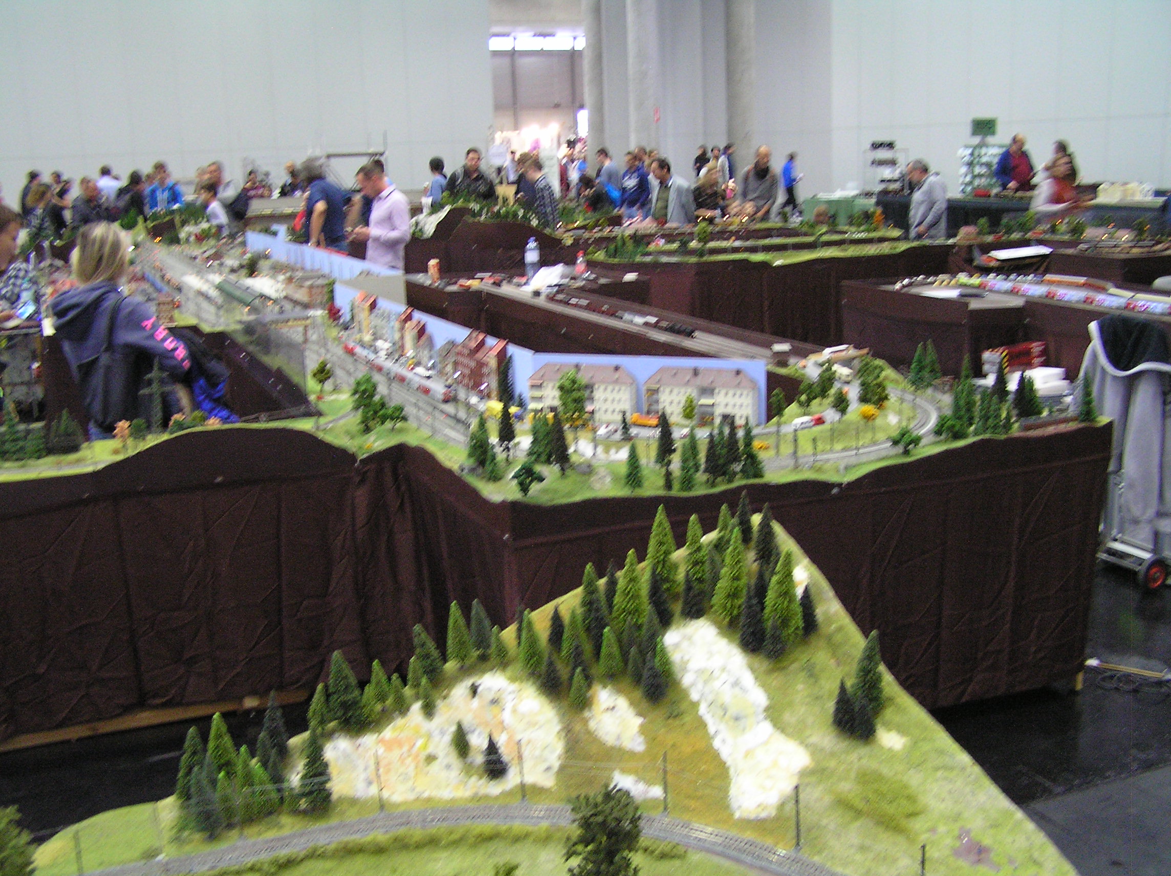 . Создалось впечатления, что все австрийские модельные магазины и немножко немецких собрались в одном месте, под одной крышей. Сама выставка была разделена на несколько павильонов: в первом, преимущественно находились стенды производителей, а по периметру стенды магазинов, также было несколько макетов и разные игровые зоны для детей. Часть павильона была отведена под радиоуправляемые модели. Второй павильон был выделен под всевозможные RC модели, включал в себя треки для соревнований и демонстраций. В нем же , в центре, была зона для мастер классов или для обслуживания и ремонта радиоуправляемых автомобилей для проводимых на треках гонок. В третьем - находилась такое количество железнодорожных макетов, которое я не видел ни на одной выставки до этого. Были представлены все масштабы от N до G. Причем поразило количество узкоколейных макетов. Много могу писать, но лучше посмотреть...