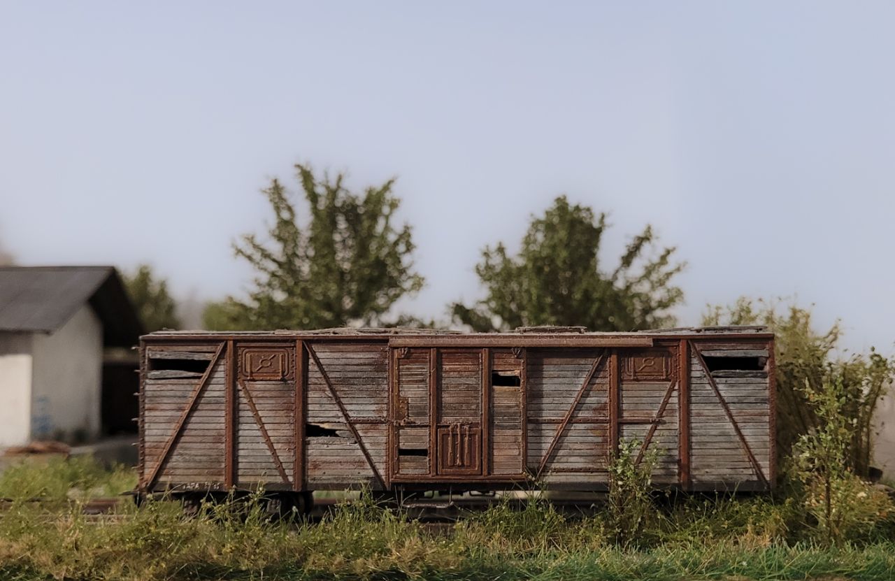 Сделан из бракованной отливки от RTM и доработан - решётки на окнах, открывающаяся дверь, интерьер, свет.