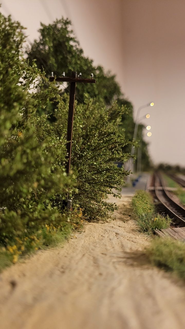 На модуле - переезд без шлагбаума, телеграфные столбы, лес и вообще природа: заросли, лужа, кусты и пр.