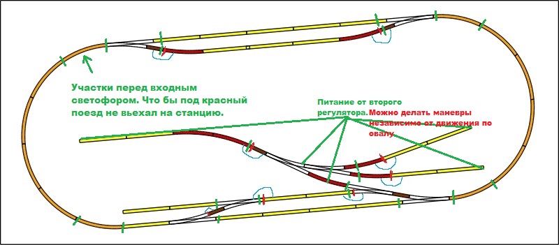 Тогда имеет смысл подойти системно и устроить изолирующие стыки везде, где они могут понадобиться (притом по обеим рельсовым нитям), с выводом проводов на коммутационную панель.Alan_Lopatin писав: ↑05 січня 2022, 21:32Тоже думал о полной разбивке на участки с двумя раздельными системами питания