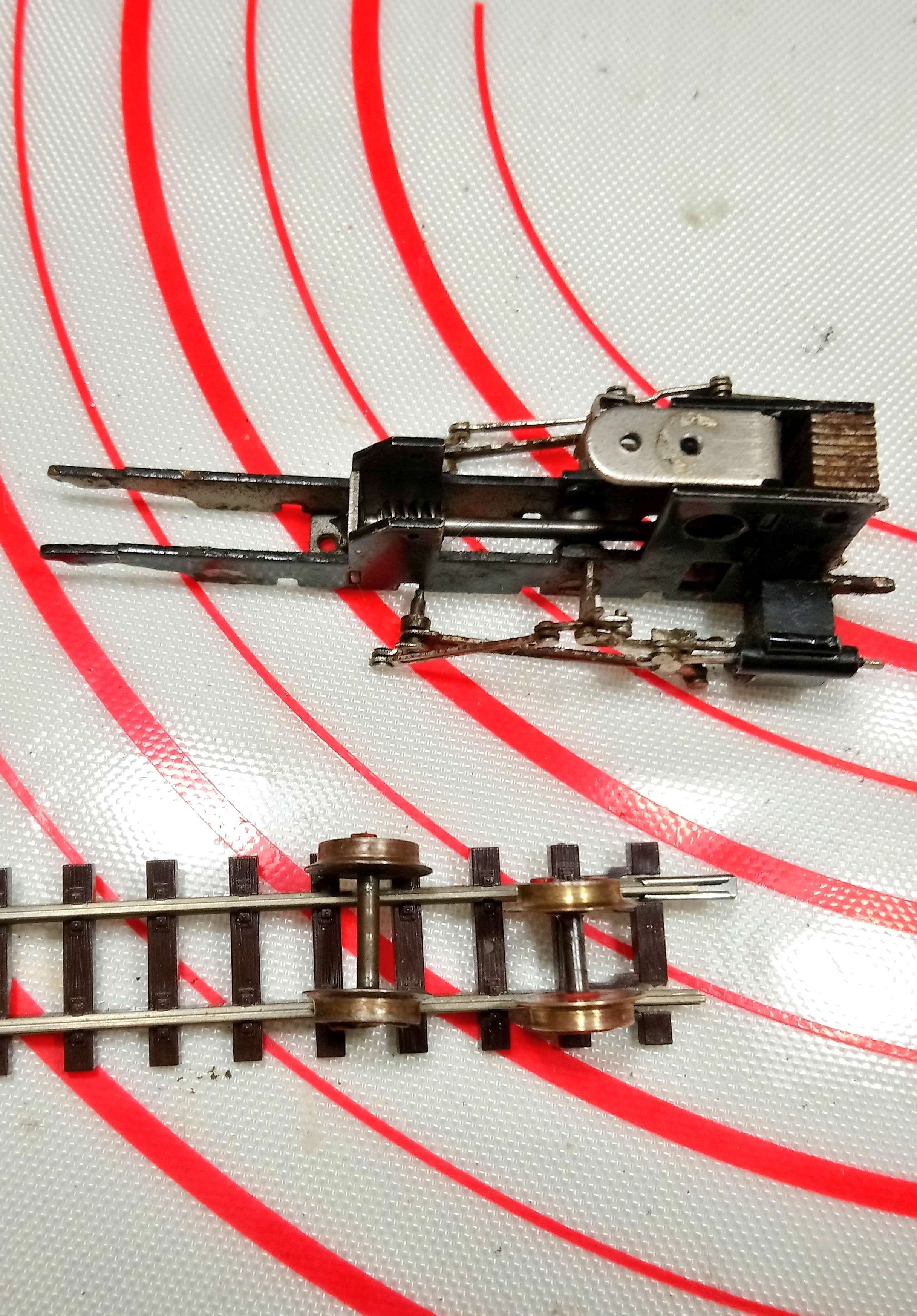 Навіть пружинки НЕМ шахт від Н0 не підходять. Залишив поки що як є. Баласту вагон