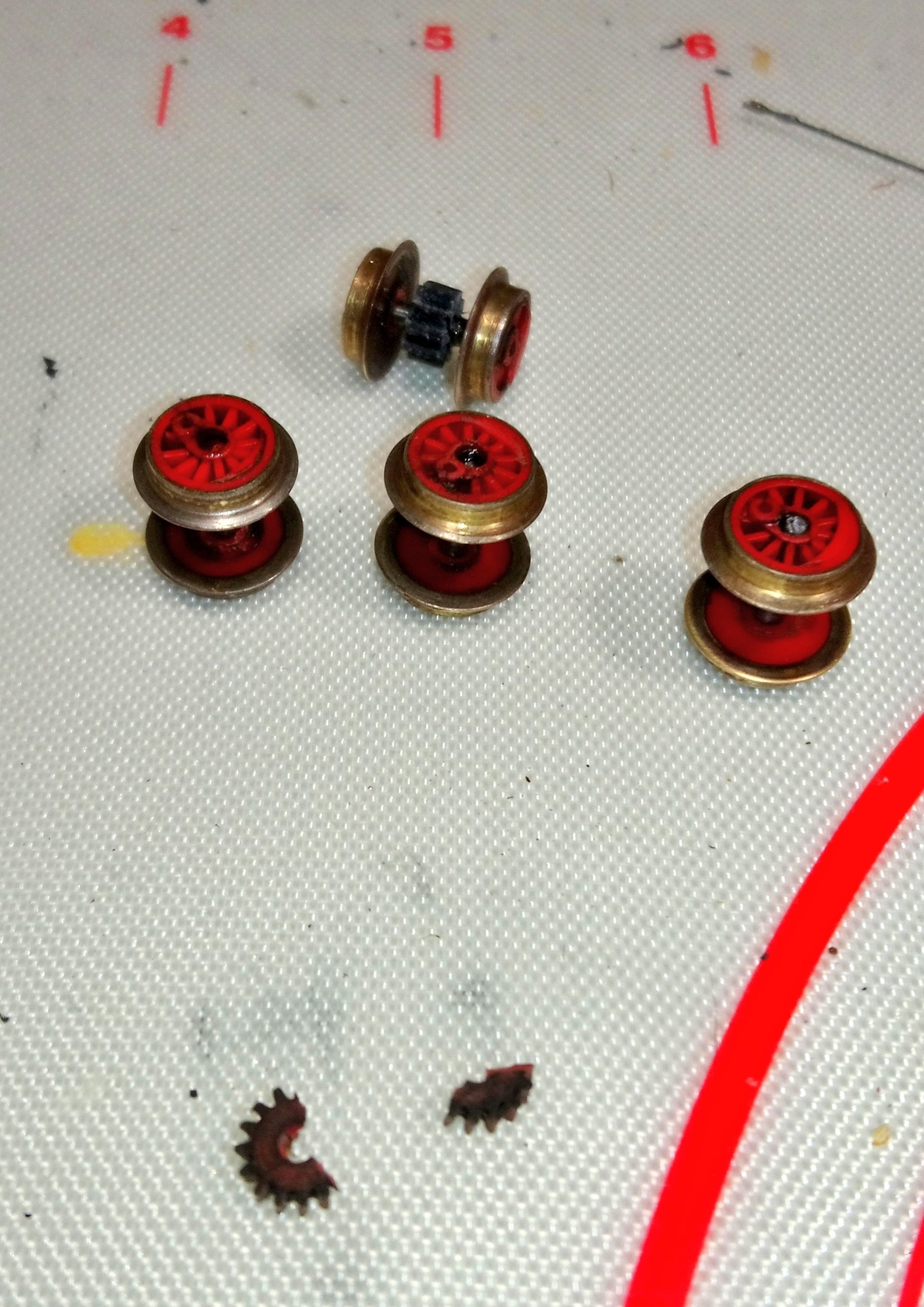 яка при розпресуванні ламає весь пластик, але не злазить з осі. Коротше, той ще жах. Далі посадив іншу шестерню на вісь. Потім знадобилося обточування реборд на колпарах,