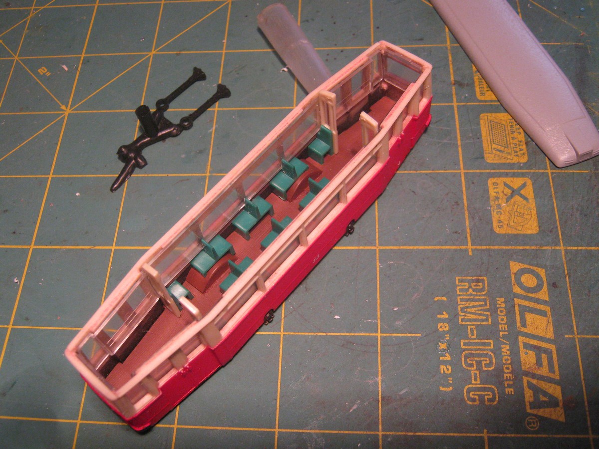 Решил уготовить этому вагону другую роль. Не забываем, что имеется нетронутый набор с моторным и прицепным. Наверное два прицепных и один моторный - это неправильно, поэтому решено из одинокого экспериментального прицепного делать моторный. Трамвай будет с дверьми на один борт и с одной кабиной управления. Стинка доверительно сообщил, что это "Типа под поздний вариант."©