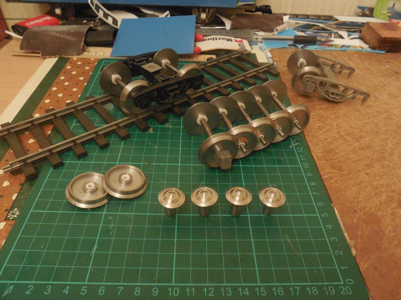 Колесные пары можно купить у нескольких фирм, но я заказывал дома у токарей колпары с эл.из втулками по нормам типоразмера.
