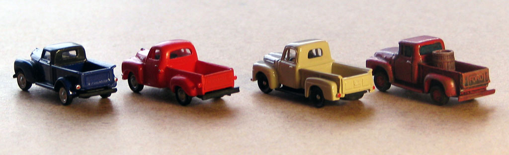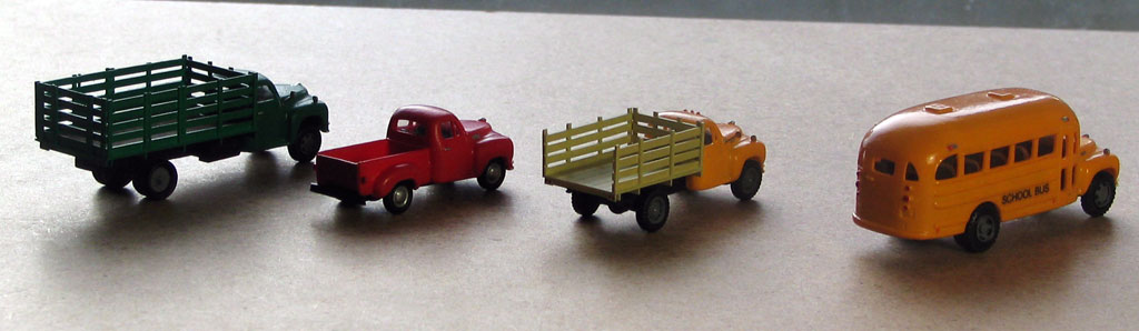 Модели выпущены американской фирмой Mini-Things (у меня такое подозрение, что фирма состоит из одного человека ;) ) и представляют собой сплошные смоляные отливки. Колеса не вращаются, окон нет.