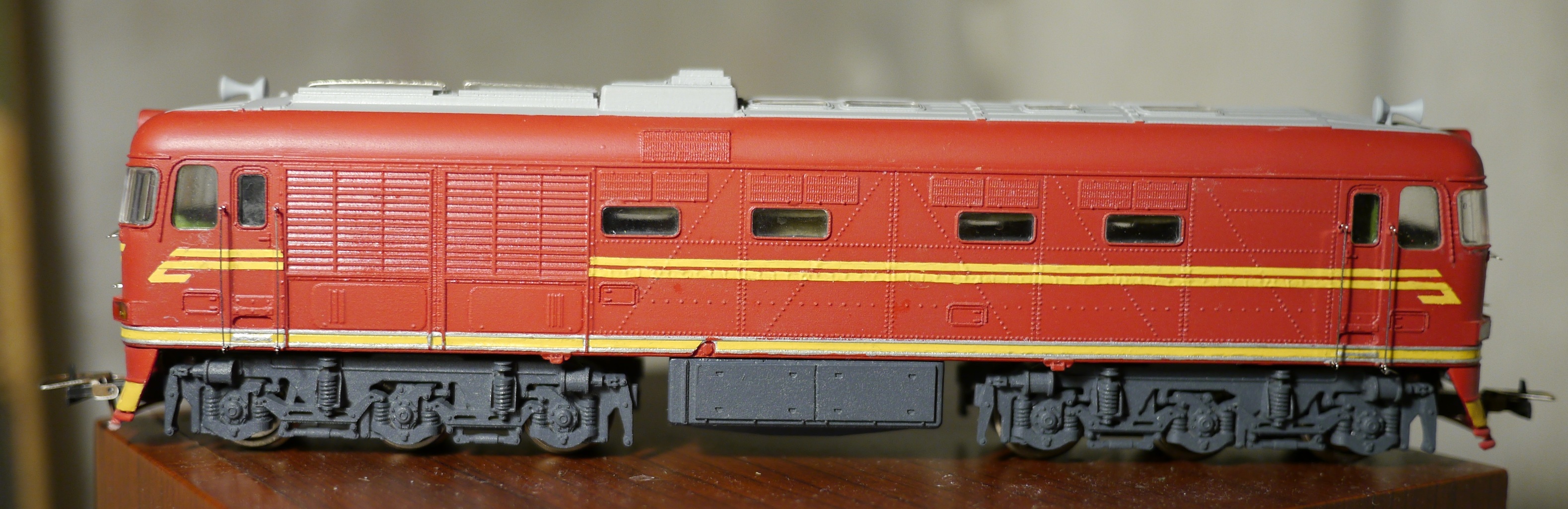 О качестве окраски и нанесения полос в принципе можно судить на фото. Основной цвет хороший, покрашен лок аккуратно. В кабинах выделены сидения коричневой краской, сама внутренность кабины зеленая. В общем, «верю!» (с).