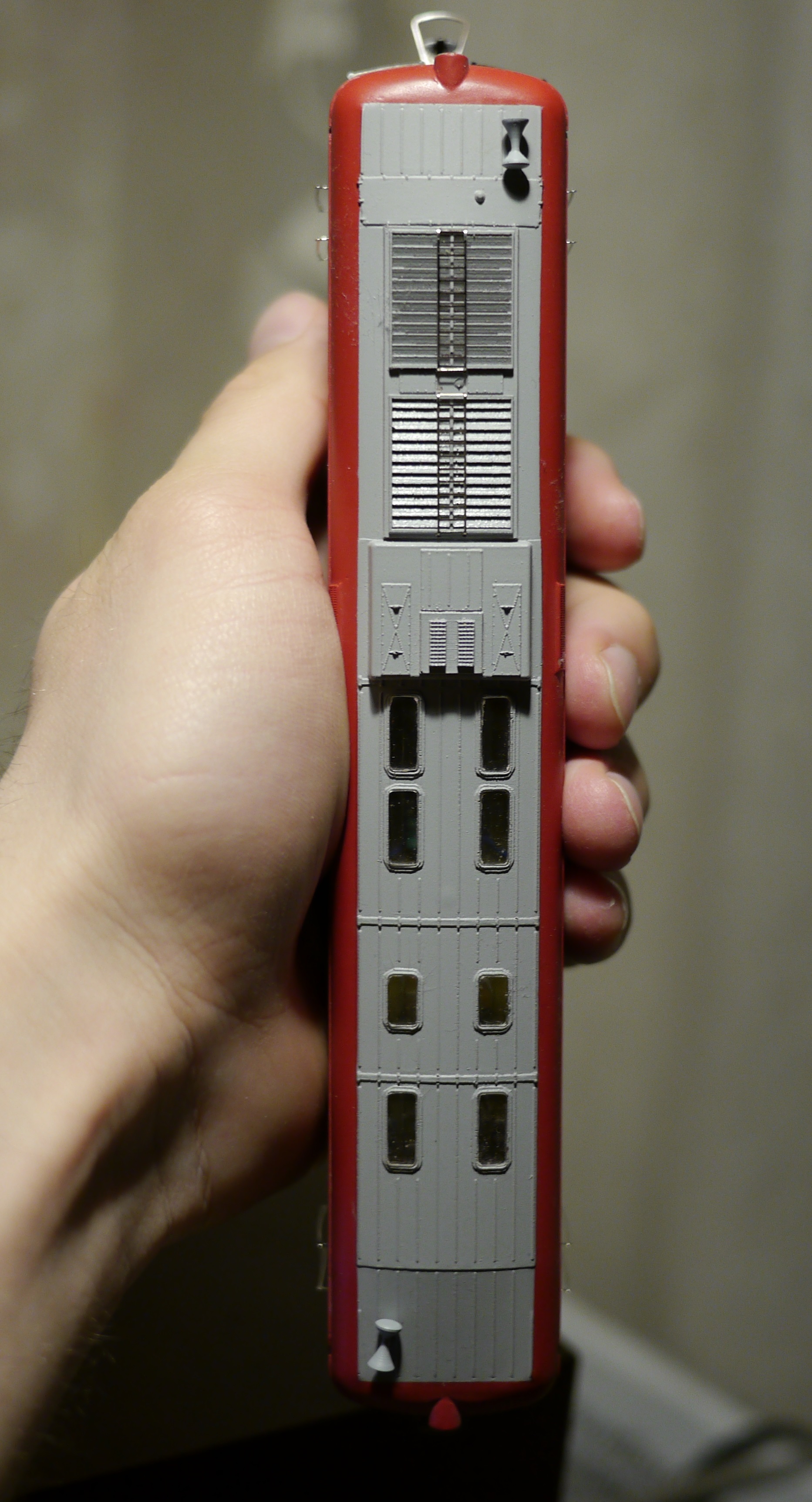 Корпус модели отлит хорошо, никаких искривлений, непроливов и т.п. не нашел на своем экземпляре. Хорошо проработаны многочисленные заклепки (напомню, что настоящий ТЭП60 обшивали дюралюминием, со сваркой которого в 60-е годы были проблемы).