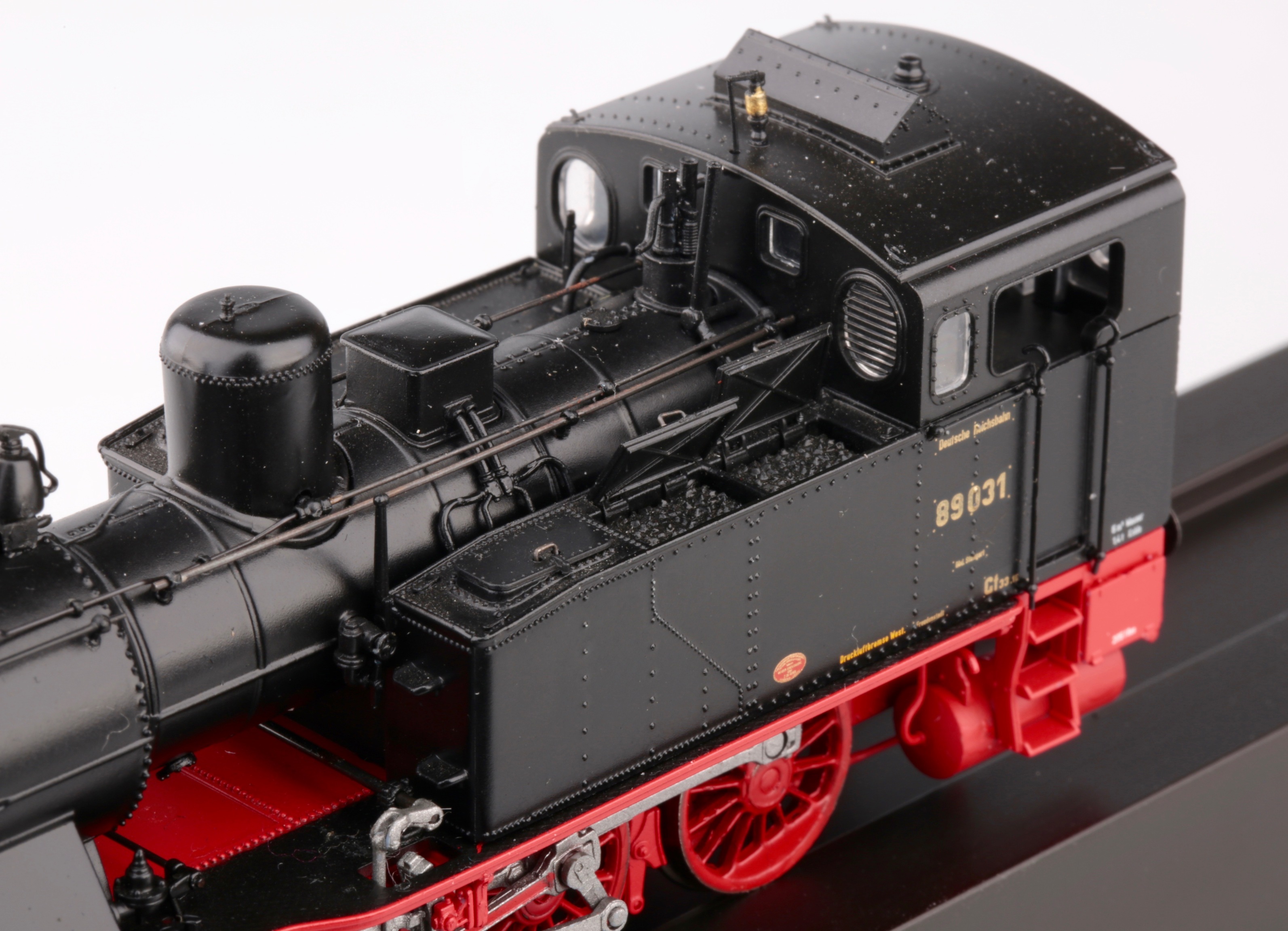 Модель паровоза BR 89.039 DRG. Изготовлена в 2010 году,количество-всем хватит.Выполнена практически из металла, (силумин) навесное оборудование и парораспределительный механизм частично из пластика, что конечно минус.Качество сборки и покраски вполне приемлемое.Эксплуатация на макете ограниченна из-за ненадежно закрепленного навесного оборудования.( все очень хлипкое) По моему мнению, место этой модели в витрине.