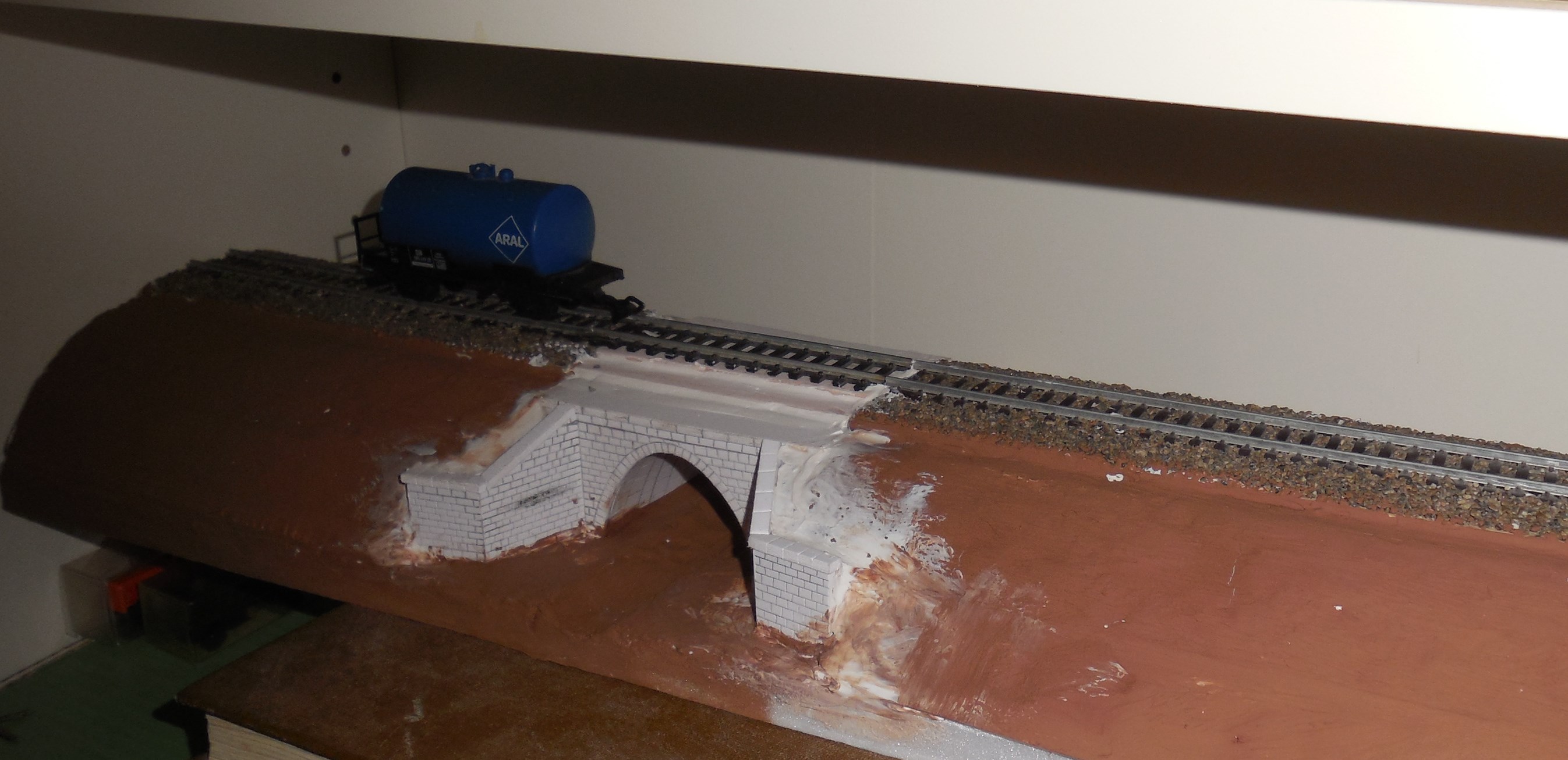 Рельсы и стрелки имеют отдельное питание.По торцам рельсы припаяны к текстолитовым плашкам.