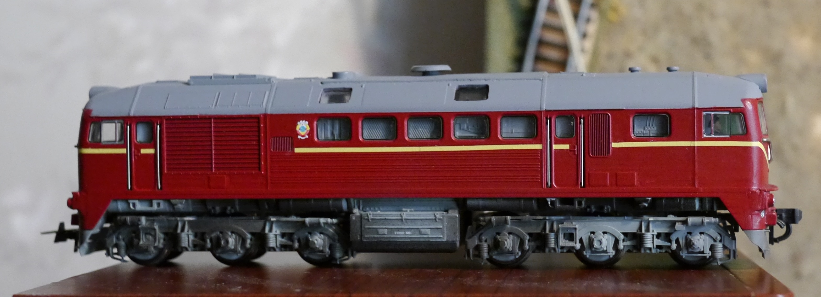 Пока со звездой ничего не придумалось, нанес декаль. Заменю в дальнейшем на что-то интереснее ;) Спасибо форумчанам, есть предложения на эту тему. Тепловоз выглядит сейчас так:
