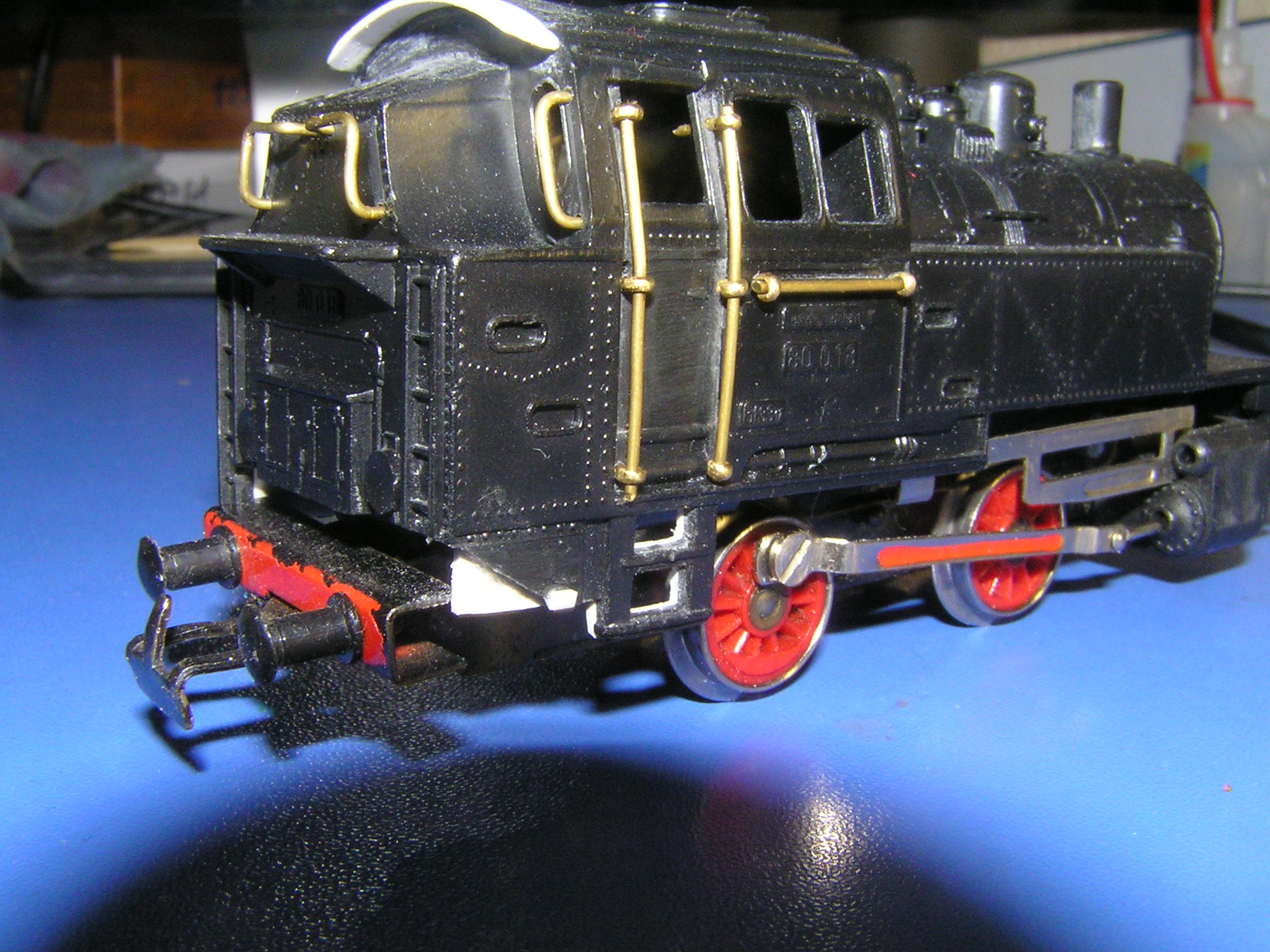 И снова привет! Денис, я во общем то тоже склоняюсь, что кто то злые руки приложил, под тендером площадка вырезана не идеально ровно. Тормозит только одно, в выводе что совсем злой запил, повторюсь, видел лок с аналогичной фигуркой, сейчас пока фото найти не могу. На буверном брусе осталось по одной точке, там хорошо видно на фото немного сверху, а так да судя по всему именно кисточкой и покрашен. Будем краску сымать...Stinky писав:Есть несколько версий.Pantograph писав: Сейчас раздумываю, вроде всё карболитовое было в 50-х, а этот вроде пластик. Паровоз загадка прям,или чей то злой хендмей.