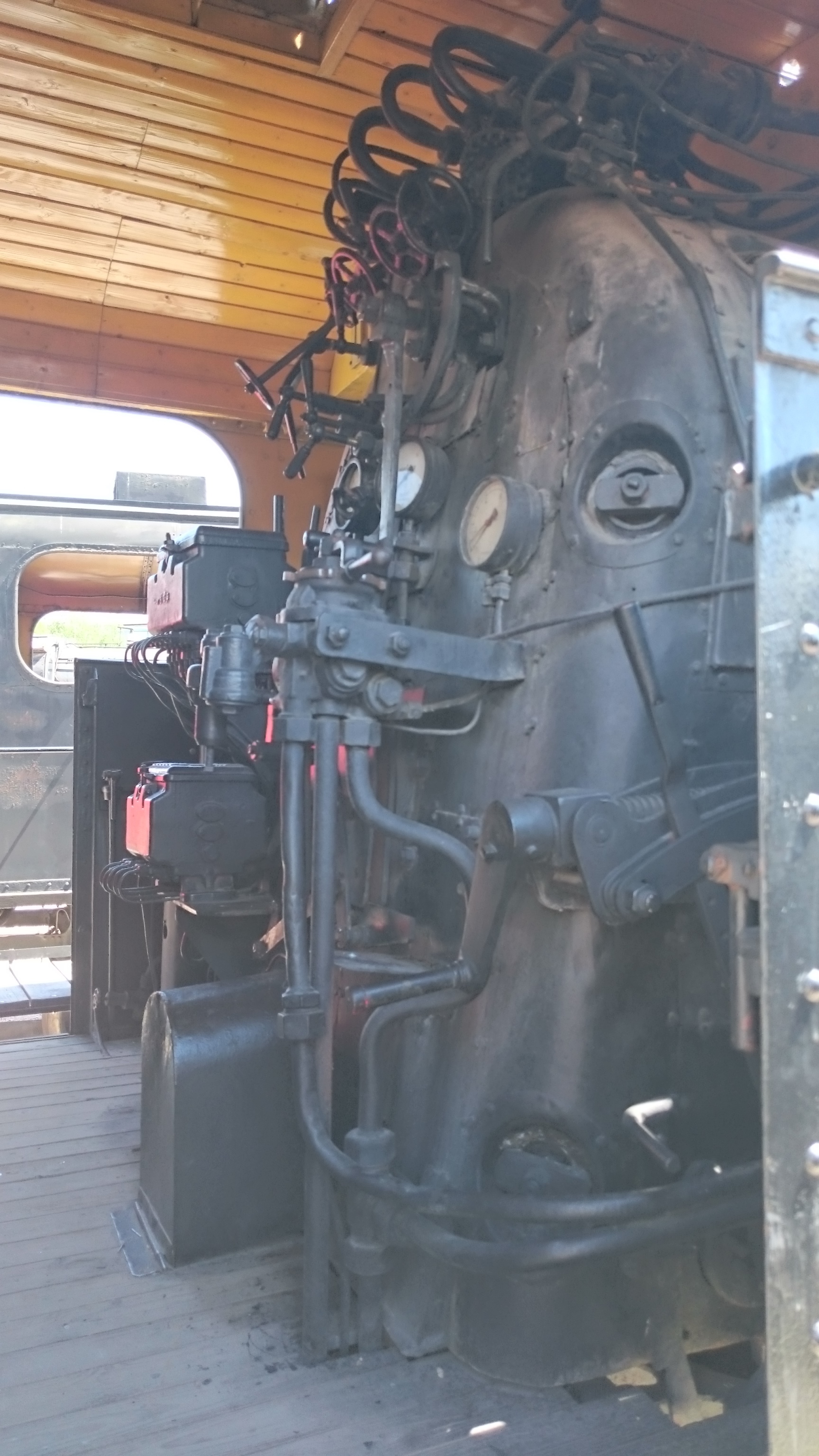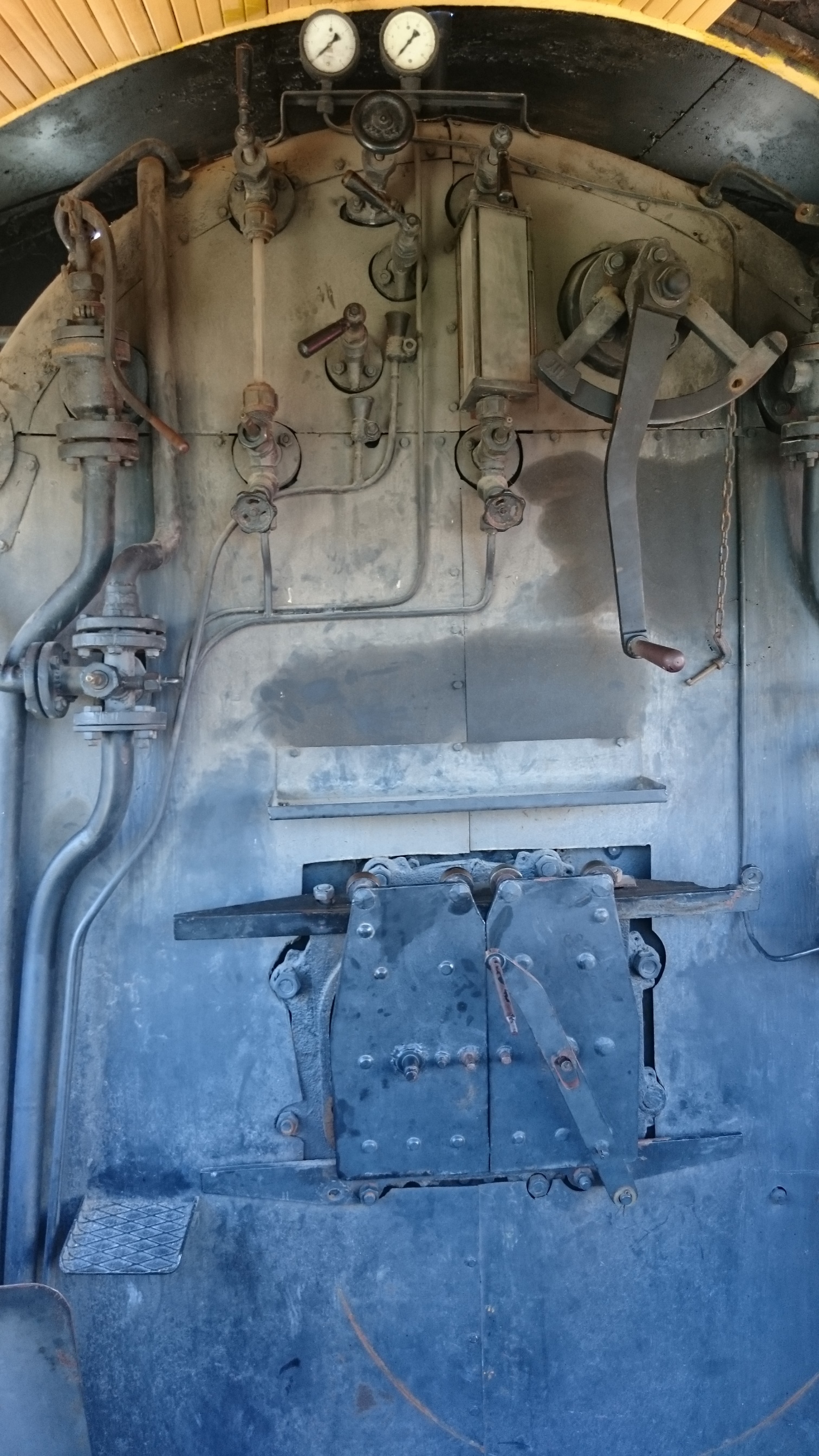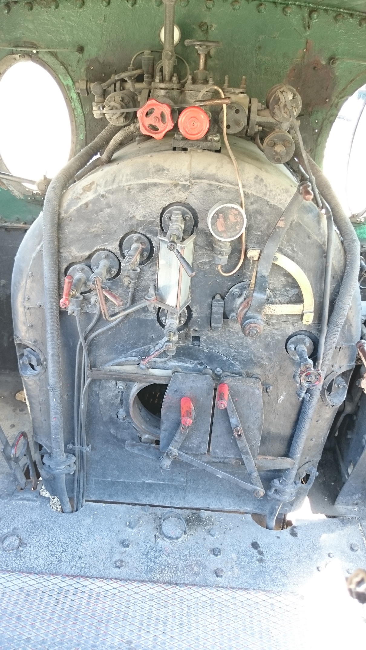 Его внутреннее убранство. Топка настолько огромна, что мне пришлось влезть в тендер, чтобы она поместилась в кадр! Высота той части, что в кабине более 2-х метров.