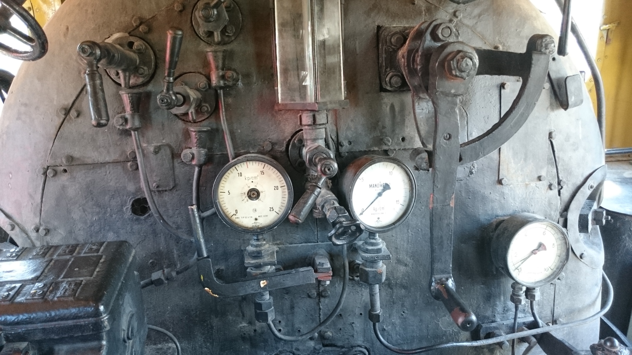 В продолжение темы добавлю сюда фото внутренностей будки машиниста 52-го паровоза, которые также ходили и в Венгрии под серией 520. Вот он сам- немного закрыт платформой, но думаю - узнаваем :) Между прочим - до сих пор на ходу и в масле: