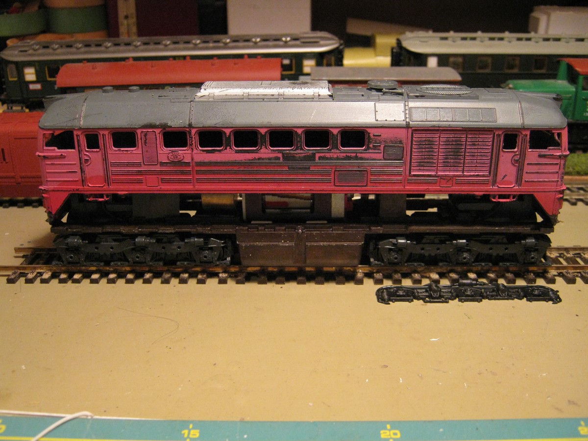 Никакого треша не вижу. Вижу серьезную работу по ремоторизации: локомотив идет тихо и плавно, волочет состав. Результат, как по мне, отличный.