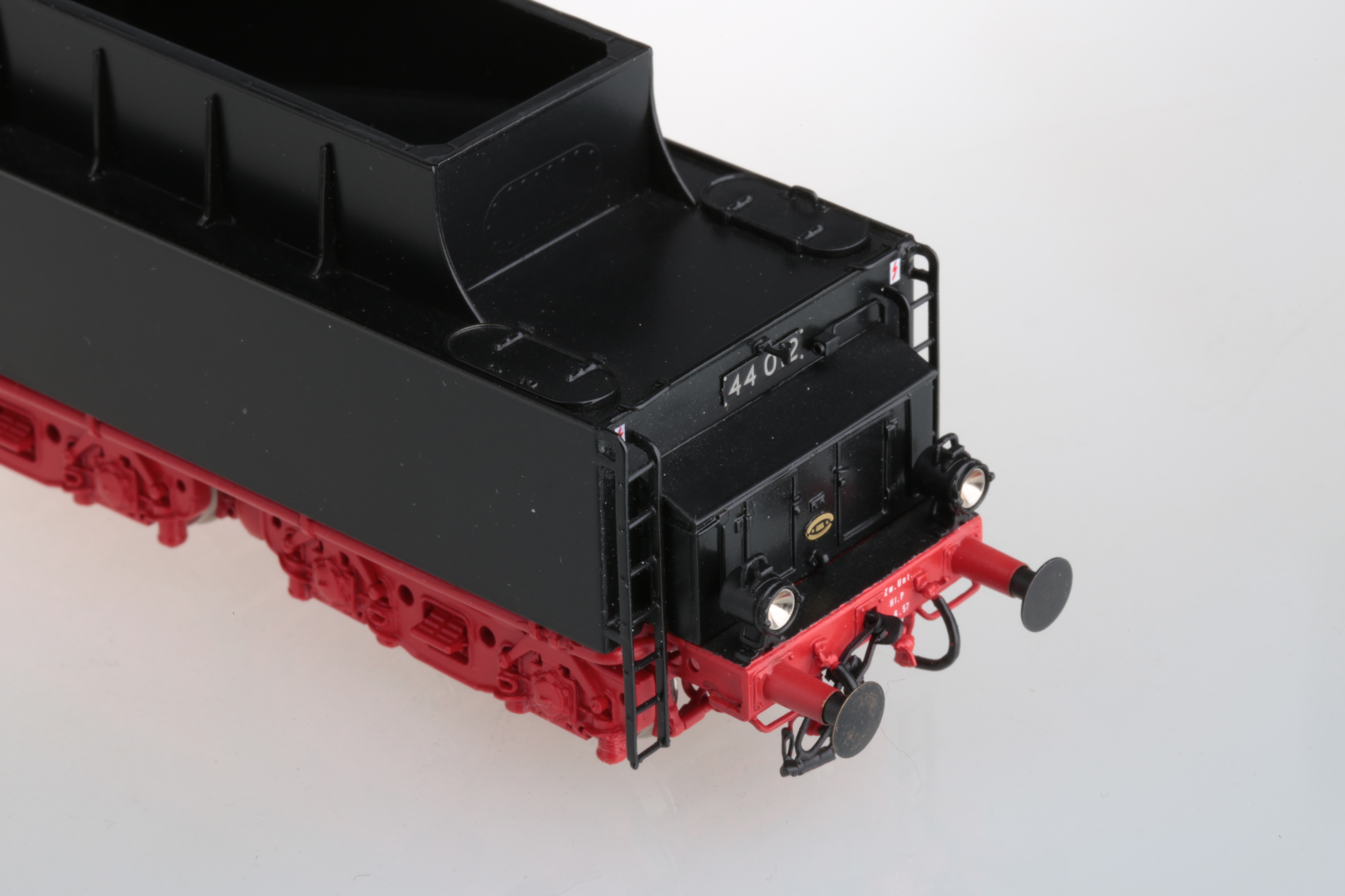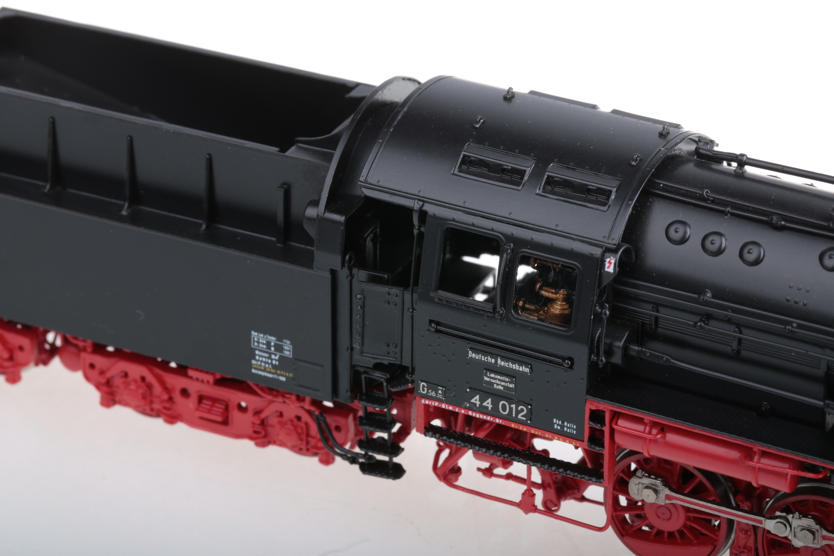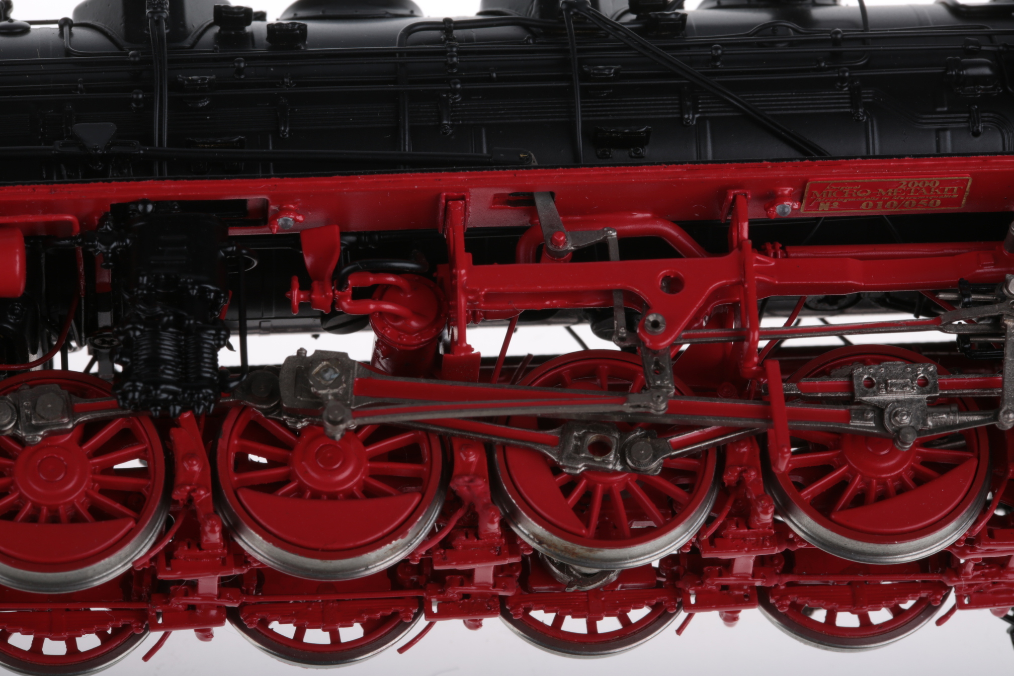 Итак... Micro Metakit art. 99104H. BR 44 012 DR/Ost/,изготовлена в 2000-ом году, всего 50 экземпляров. Примечательно то,что в отличии от других производителей в М.Metakit смоделировали четырехцилиндровую версию этого легендарного локомотива, в отличии от классического трехцилиндрового, которую делают практически все фирмы, выпускающие ж/д модели.Очень кратко об истории прототипа. Всего Геншелем в 1933году было выпущено два аналогичных паровоза BR 44 011/фабричный номер 22000/ и BR 44 012 /фабричный номер 22100/, который после войны и попал на территорию восточной Германии, где недолго использовался в качестве подопытного пациента и успешно в 1966-67 годах, /если ошибаюсь- поправте/был порезан и разобран на те металлические составляющие, из которых когда-то был сделан...