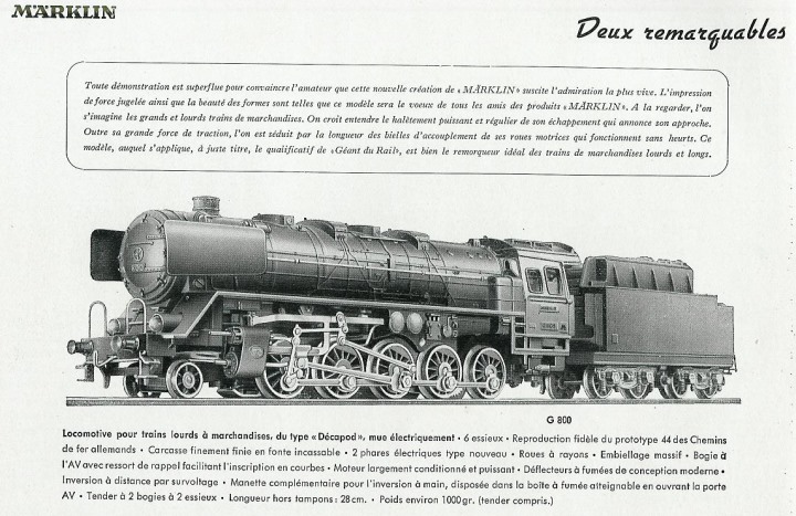 Каталог фирмы Marklin, 1950 год. Наверное -это как раз правильно, когда реклама не во вред, думаю именно тогда зародилась культура по увлечению моделями железной дороги. ( не путать с более ранним периодом, когда фирмы производили железнодорожные игрушки) Но немцы, не были бы немцами со своей педантичностью и пунктуальностью, если бы не успели в срок.Модель поступила в продажу в количестве 10000 экземпляров, как Marklin G 800 BR 44 DB. Стоимость модели на то время, была просто фантастически дорогой и составляла 180 DM.