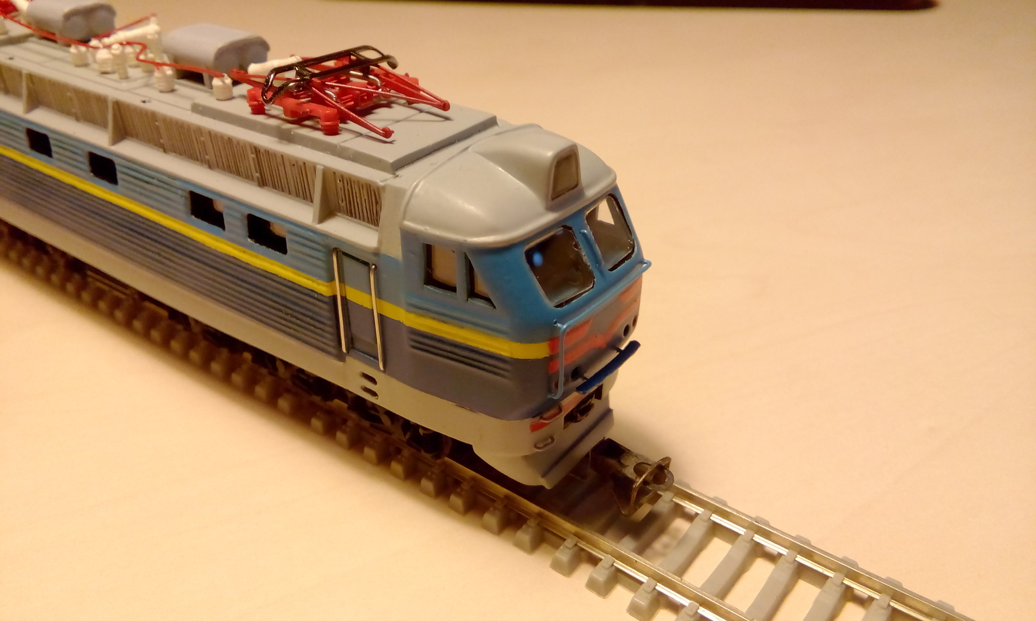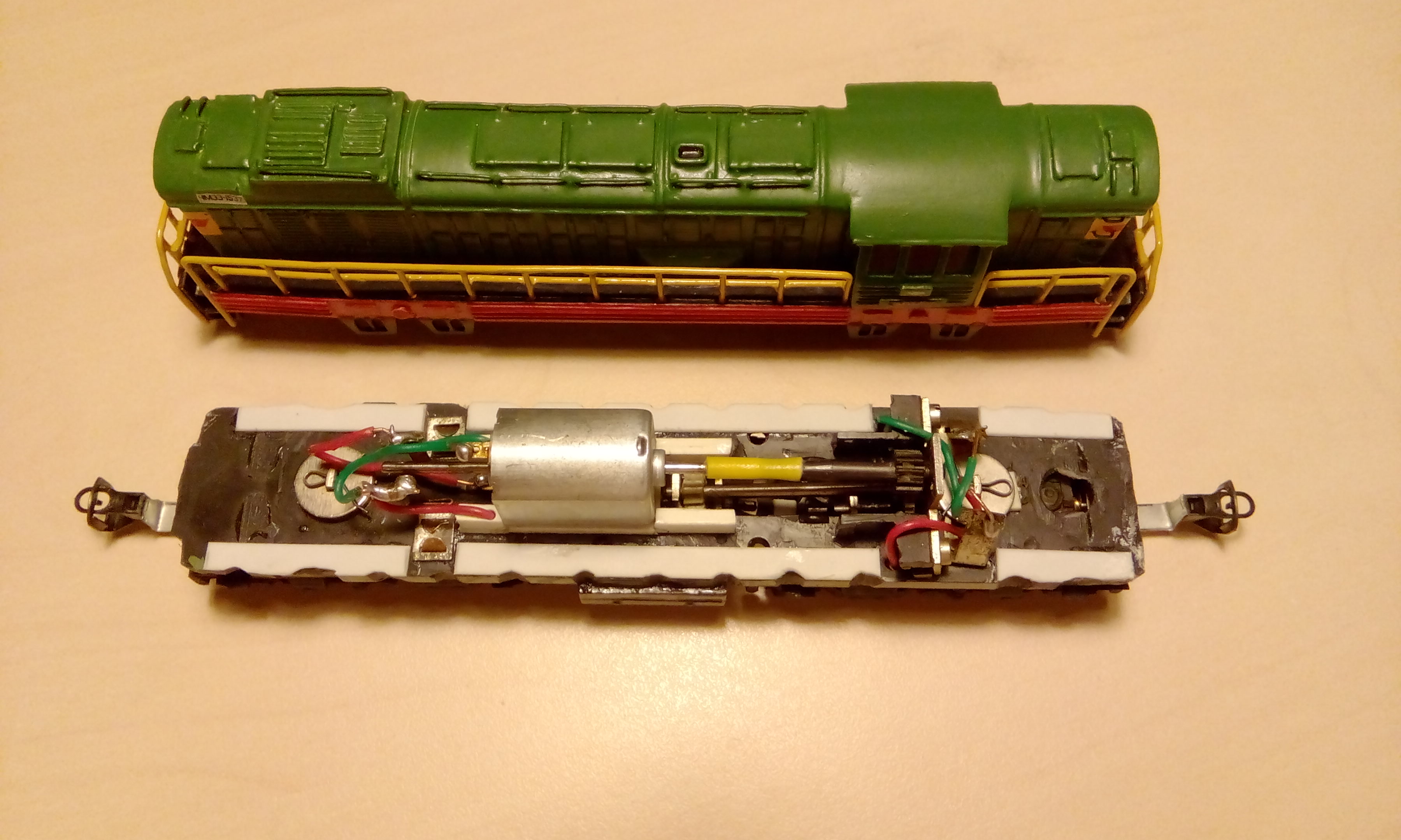 По технической части - 2 х БР130, один из которых - с приводом. Иммитация автосцепок на стороне кабин снимается, и можно установить любую из сцепок, хоть селедку. Будет потеплее - пойду катать модель по реальному перегону