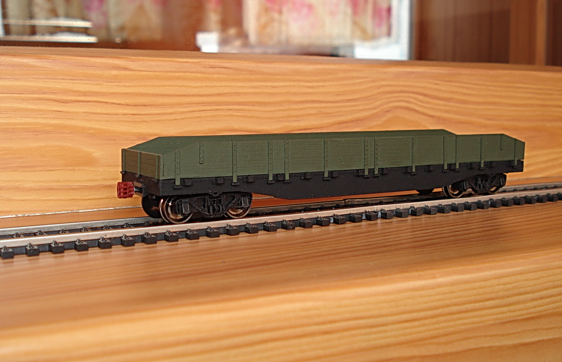Полувгаон СЖД коричневый деревянный что ли? или так пластик рельефно обработан под дерево ?
