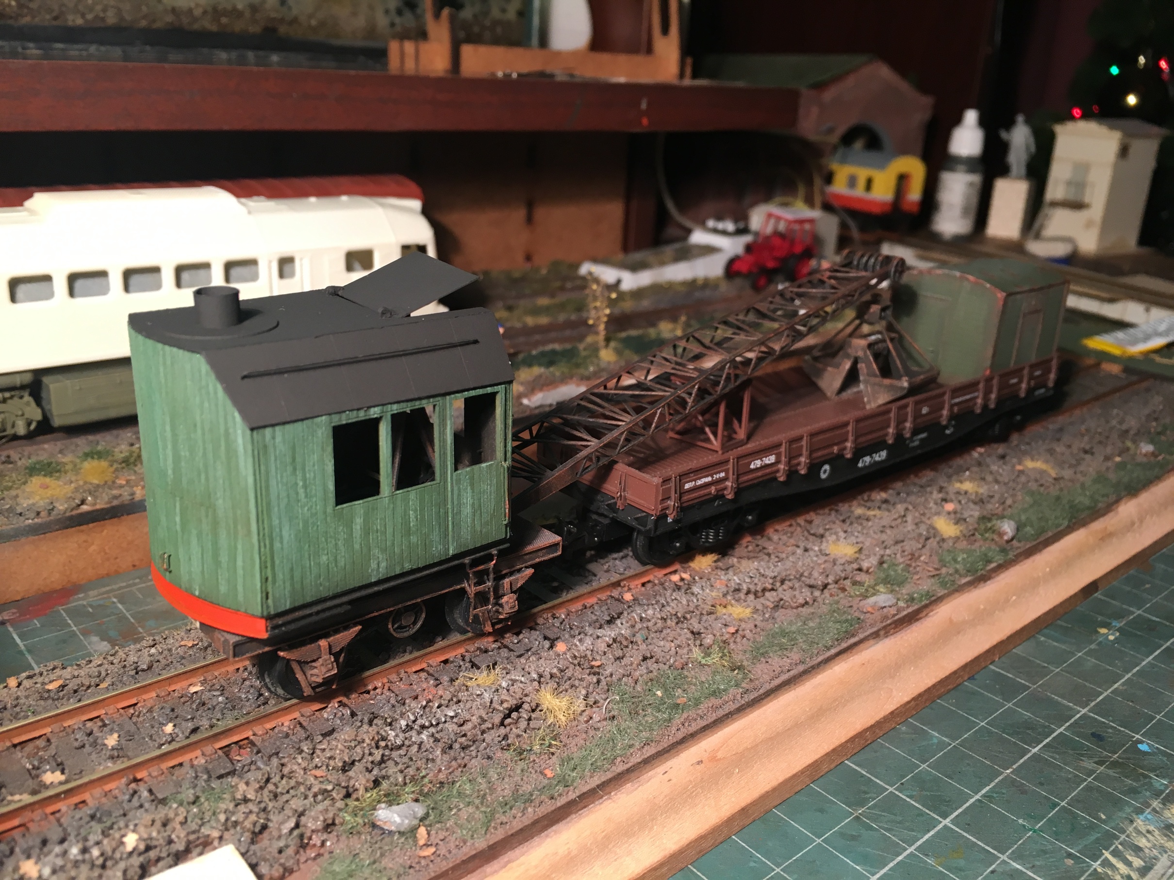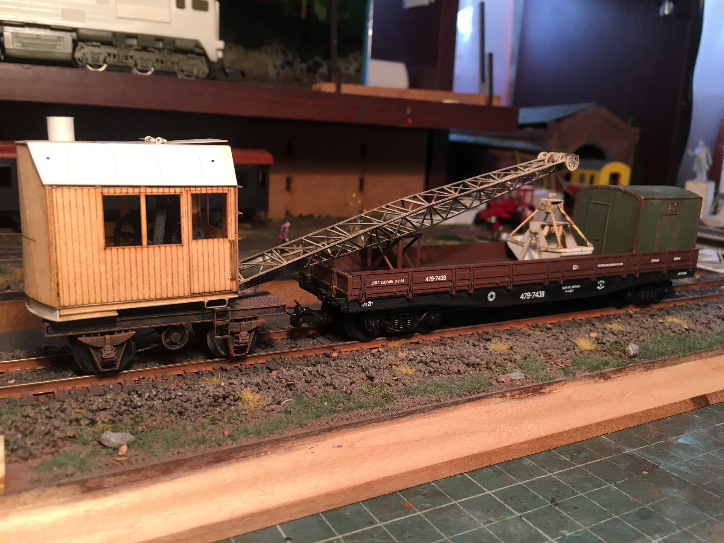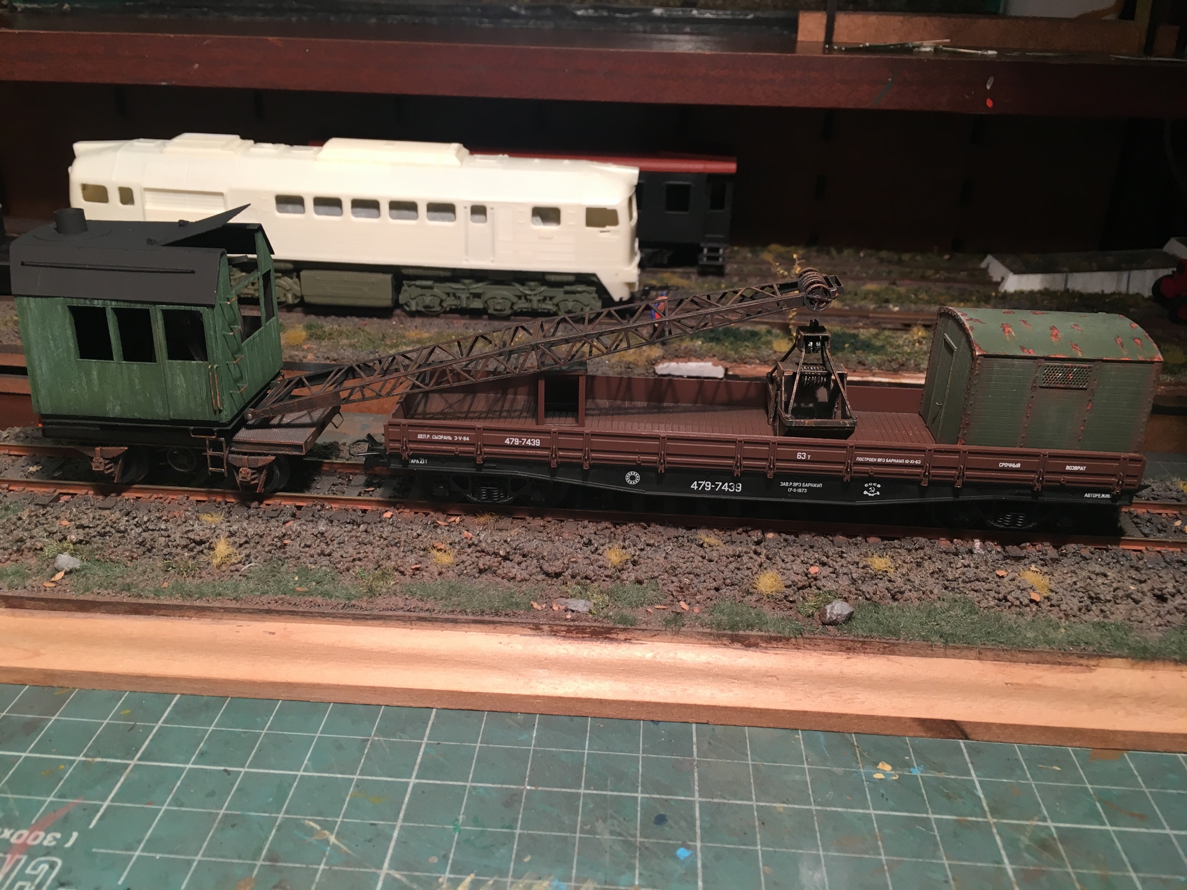 Дальше пошла покраска и декали. Платформа была давно пофкрашена светилась часто на фото с макета. Начал с грейфера: