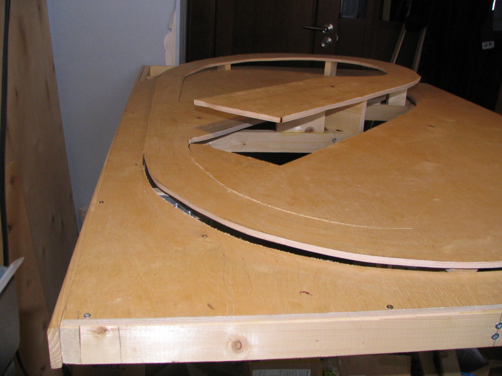 Я его немного укоротил (если пересчитать его в ТТ, то он получится в длину 180 см, а у меня есть только 150). Уменьшил количество путей на "главной" станции, убрал мост. Получилось что-то примерно такое:
