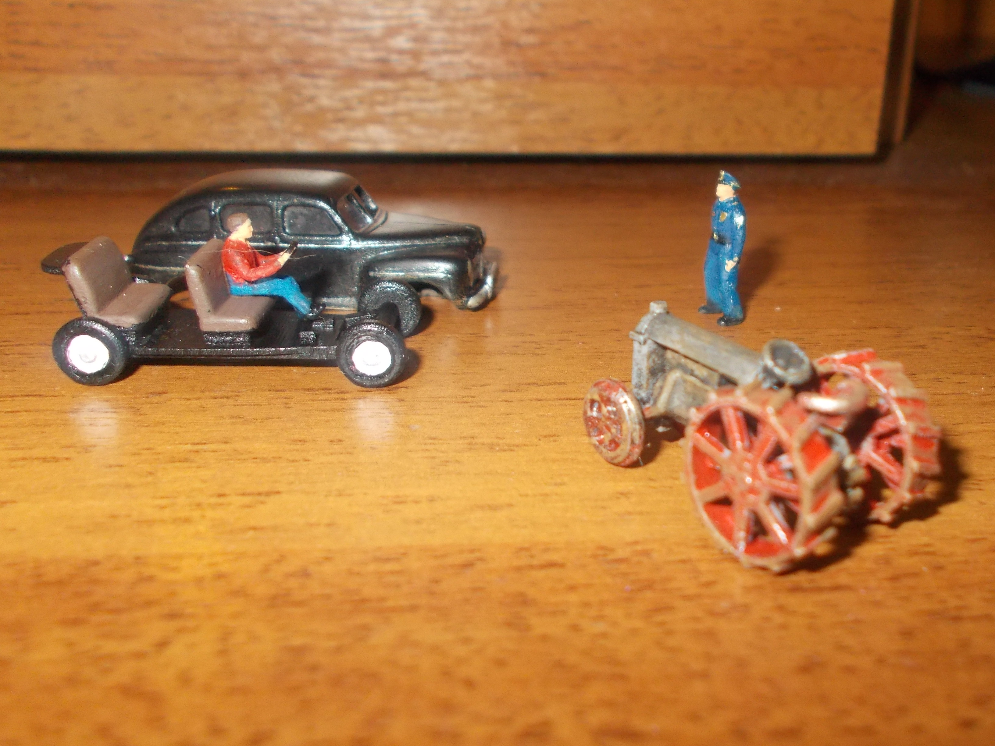 И две новых машинки. По "шоссе" едет черный "Форд" 1942 года - это 3D-печать от Shapeways. Модель очень хорошая, причем внутри есть сиденья и водитель. Но, конечно, надо закрашивать или шлифовать следы от 3D-принтера.