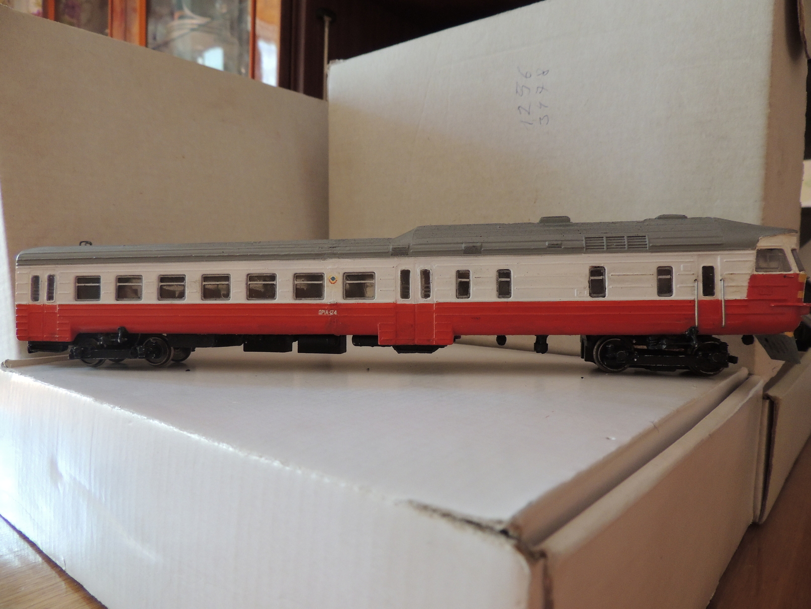 На ходовку пошёл такой же Бахмановский тепловоз как и на ЭР9.Только тут пришлось его расчленить на два вагона по телеге.Двигатели PIKO купленные у Dr Jones .Раму кузова переливал с одной перепиленной вместе с вагоном пополам. а салон моторного вагона ,подкузовное оборудование, метельник ,интерьер кабины и крышевой грибок были перелиты благодаря Юрию Шевчуку,который согласился на время предоставить оригиналы.За что ему огромное СПАСИБО.