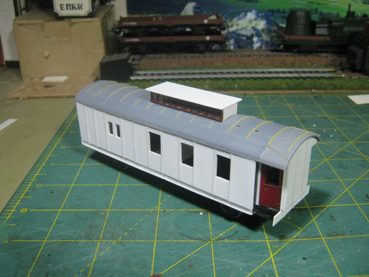 У вас сформировался хороший, тематический и очень гармонично сочетающийся состав из различных распилов и прочего. И на мой взгляд, этот вагон, туда вписывается, не моргнув и глазом. И не это ли самое важное? Вагон есть, стоит и радует. Поправьте, но мне кажется, что вы не ставили перед собой задачу, вложить модель в чертежи и сделать копийно музейную модель.